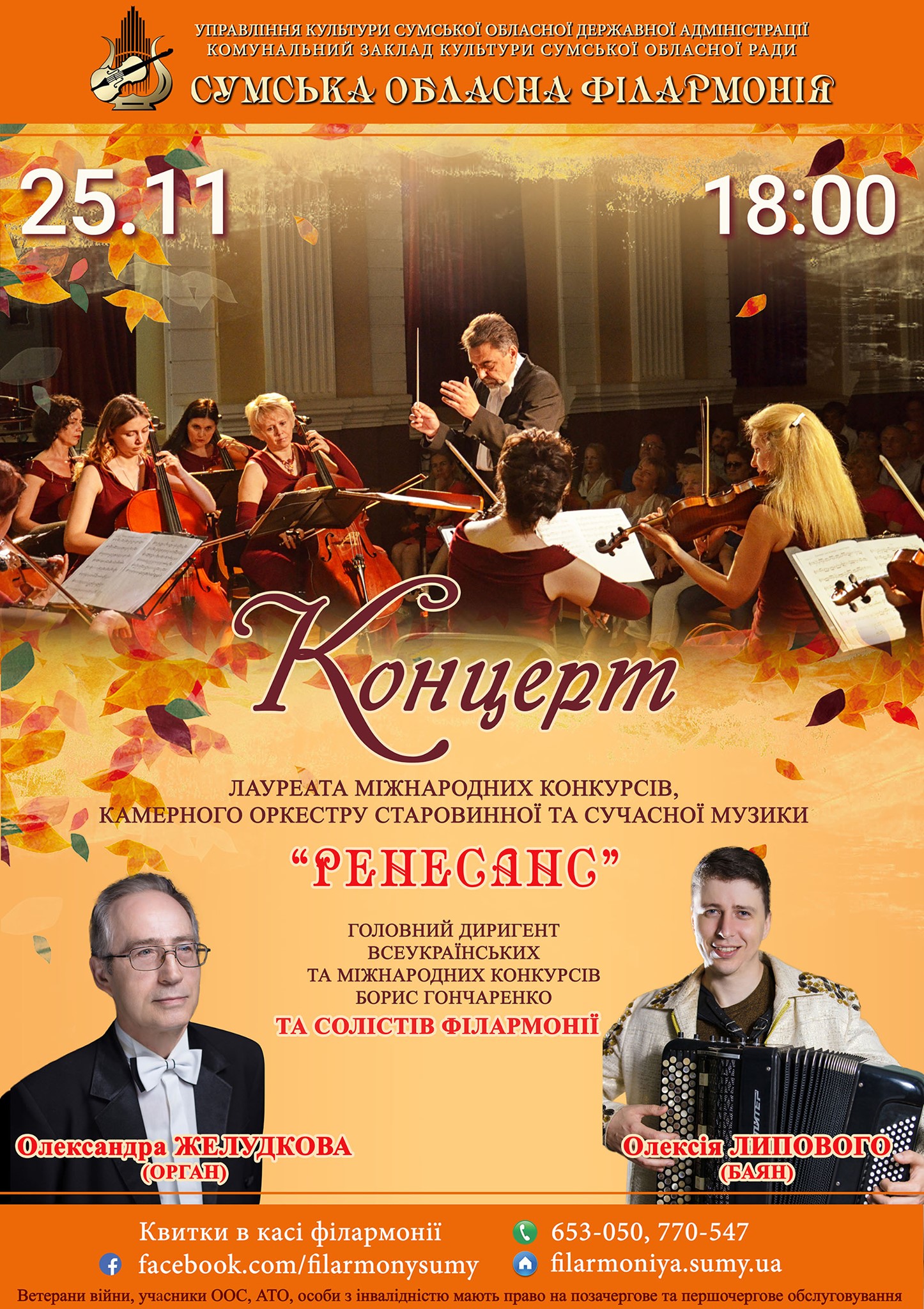 Цього тижня в Сумській обласній філармонії відбудеться концерт камерного оркестру старовинної та сучасної музики «Ренесанс». У суботу «Цукр» запрошує всіх охочий повчитись краудфандингу. Після навчання всі учасники матимуть змогу додавати свої ініціативи на платформу Ц.Зміни та разом із «Цукром» долучати доброчинців до фінансування змін у Сумах! Які ще події відбудуться цього тижня в місті — […]