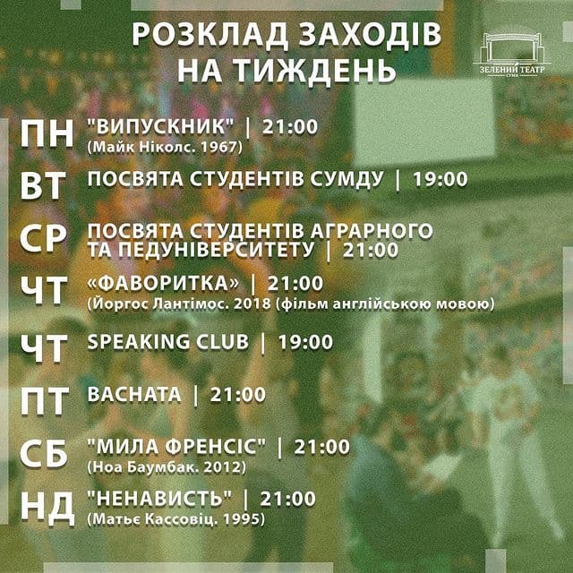 Всі події тижня ви знайдете нижче у тексті, а події до Дня міста Суми від міської ради можна переглянути в одній афіші: