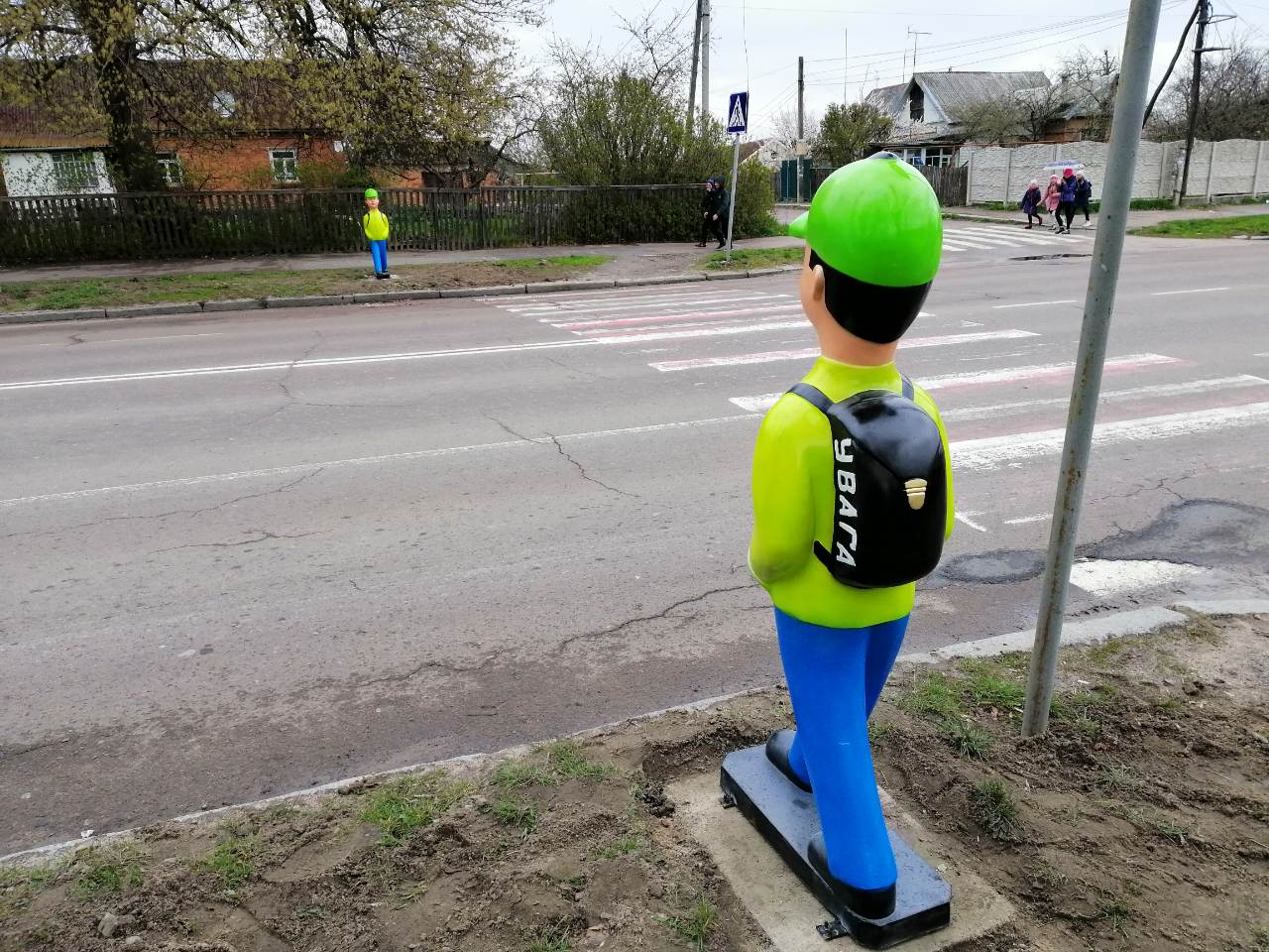 У багатьох містах України вже давно існує практика встановлювати фігури школярів біля пішохідних переходів. Як говорить Андрій Васін, транспортний експерт, такі пластикові муляжі не працюють, бо жодних досліджень щодо доцільності встановлення цих фігур не існує. У програмі «нульова смертність», яка працює по всьому світу, згадки про пластикових манекенів немає.