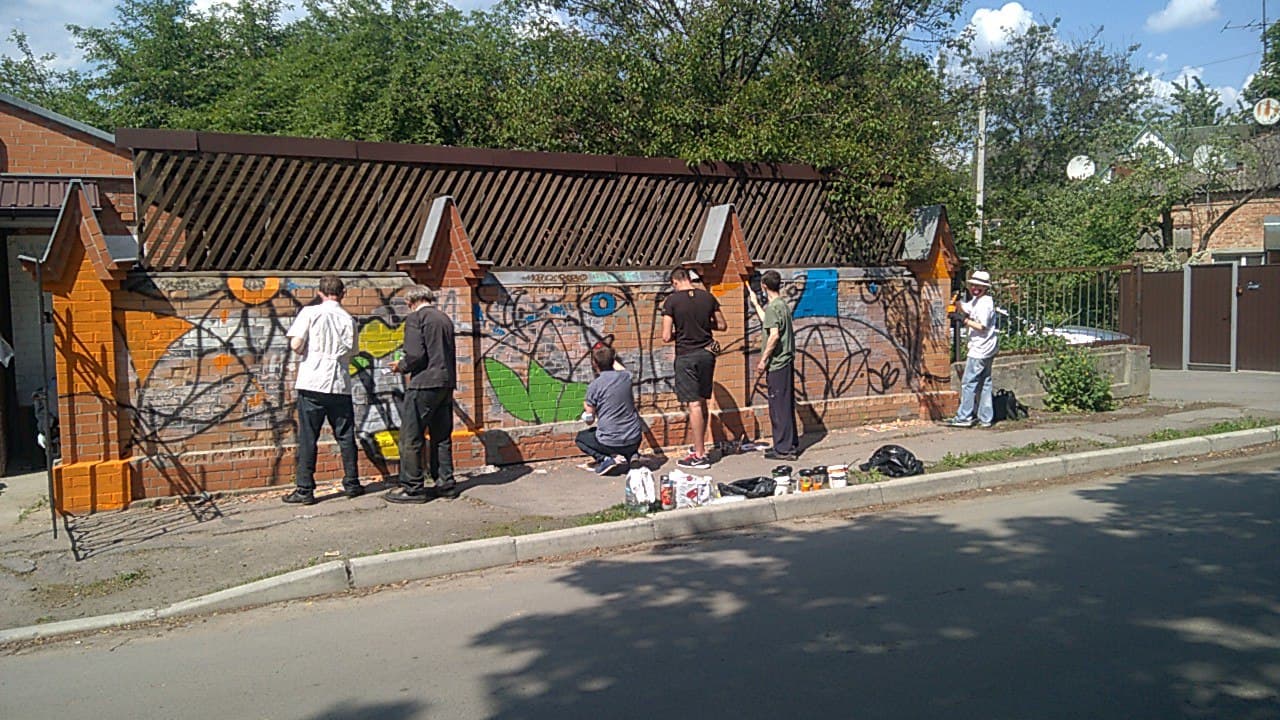 Задум «оживити» старий паркан з’явився тоді, як на ньому хтось написав лайливі слова. Працівники галереї «Наша на Псільській» їх зафарбували, а згодом арткуратор Антон Дубодєлов запропонував створити стінопис. Проєкт проводили в два етапи. Спершу нужденним, які зазвичай обідають в костелі, запропонували намалювати або написати що-небудь на паперовому аркуші. На цю пропозицію відгукнулося близько двадцяти осіб.