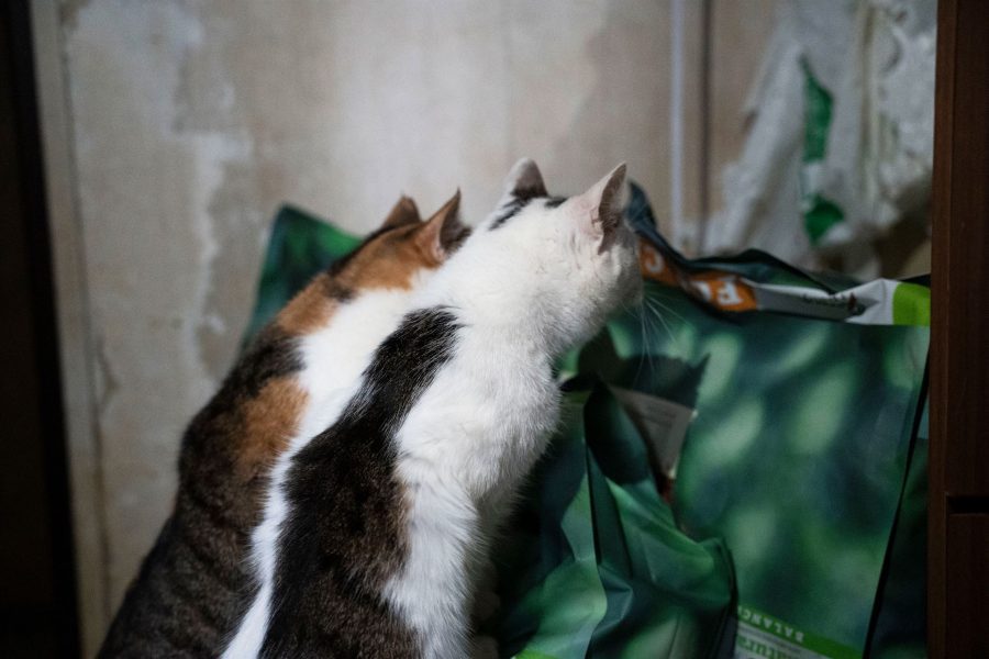 Одну з кішок Олена прихистила на початку березня. Каже, що в перші тижні війни відчувала шок, адже оптові замовлення корму не працювали, тому доводилося з возиком ходити по магазинах.