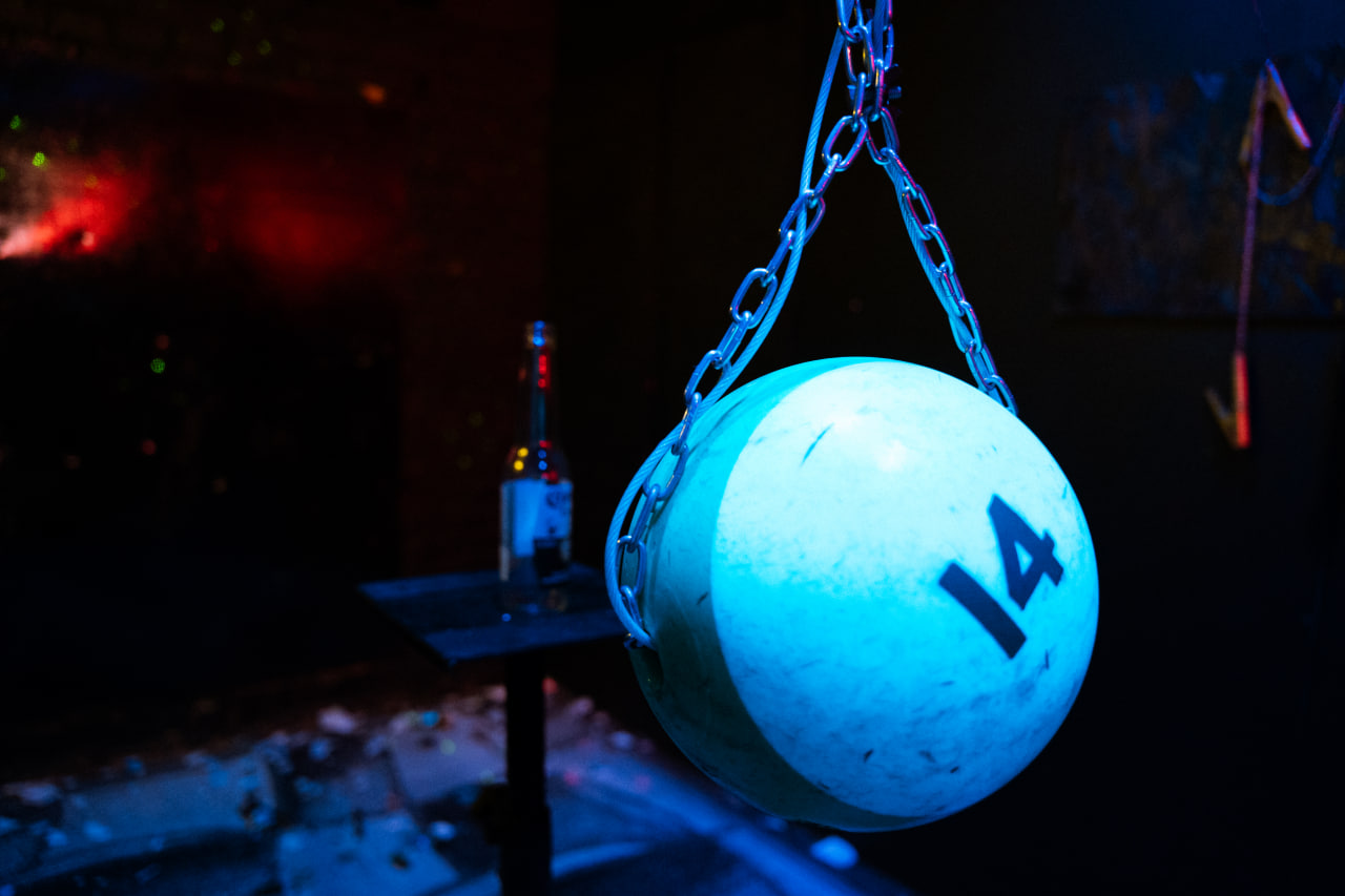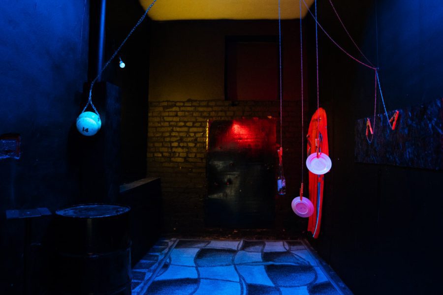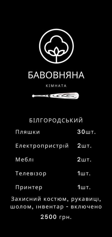 «Бавовняна кімната» ― це невелике приміщення з темними стінами та яскравою підсвіткою. До стелі тут прикріплені різноманітні речі для побиття та куля для боулінгу.