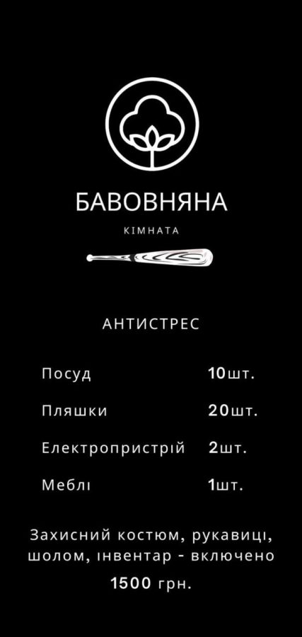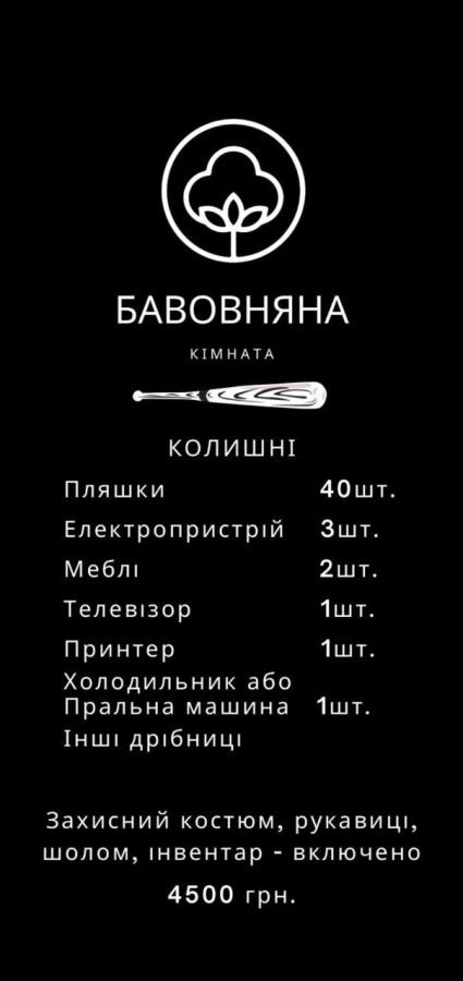 Відвідувати кімнату гніву можна гостям від восьми років. Головне правило ― мати закрите взуття та одяг. Побачити ціни можете нижче: