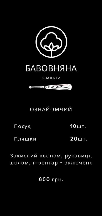 У липні на вулиці Дмитра Бортнянського, 57 відкрилася перша в Сумах «Бавовняна кімната» гніву. Тут сум’яни можуть виплеснути накопичені емоції, позбутися стресу або розважитися з друзями, розбиваючи тарілки, пляшки, телевізори та пральні машини. Цукр дізнався у власників, як проходять сеанси, вартість тарифів та основні правила закладу.
