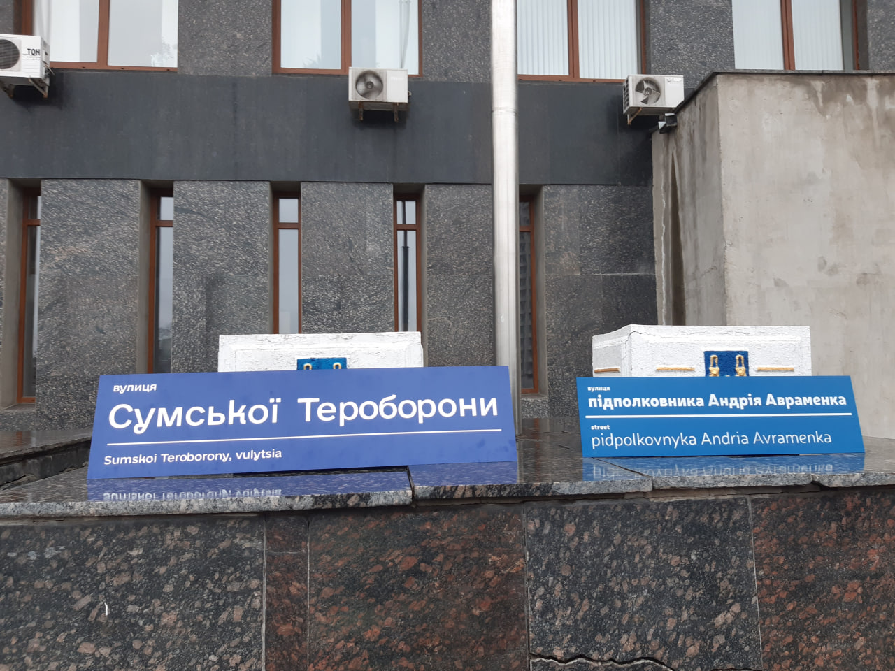 На сесії міської ради планують розглянути електронну петицію «Вулиця «Сумської Тероборони» має з’явитися в Сумах! Доперейменуймо й решту недоколонізованих назв?». Проєкт рішення про її підтримку чи відхилення депутатським корпусом з’явився на сайті міської ради. Ініціатори звернення також пропонують запровадити типовий дизайн адресних табличок-вказівників. Необхідну кількість голосів від жителів міста петиція набрала ще в січні 2023 року.