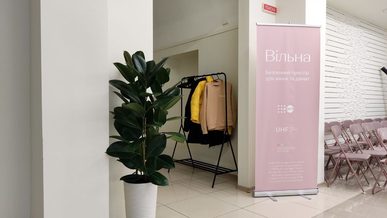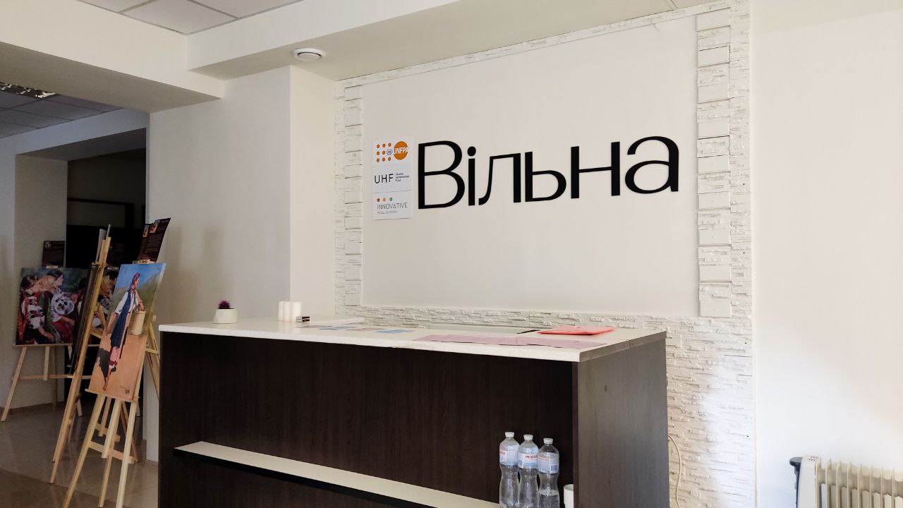 Безпечний простір «Вільна» знаходиться у центрі міста. Виглядає як поєднання сучасного, стильного офісу та художньої галереї. У частині приміщення простір заповнений роботами митців ― виставка тут триває з дня відкриття. На вході гостей зустрічає адміністраторка Христина ― вона може надати інформацію про майбутні заходи та записати жінок на майстер-клас або консультацію спеціаліста. За задумом, саме сюди жінки можуть прийти, щоб гарно провести час, навчитися чомусь новому або отримати кваліфіковану допомогу психолога.