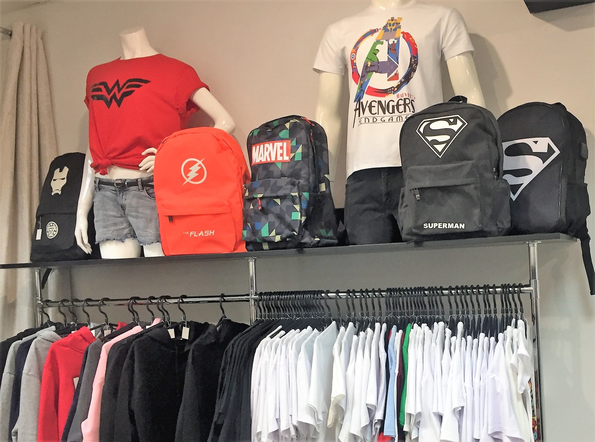 Крім коміксів, маємо сувеніри з супергеройською атрибутикою: іграшки, флешки, мишки, футболки, кепки, рюкзаки, наліпки…