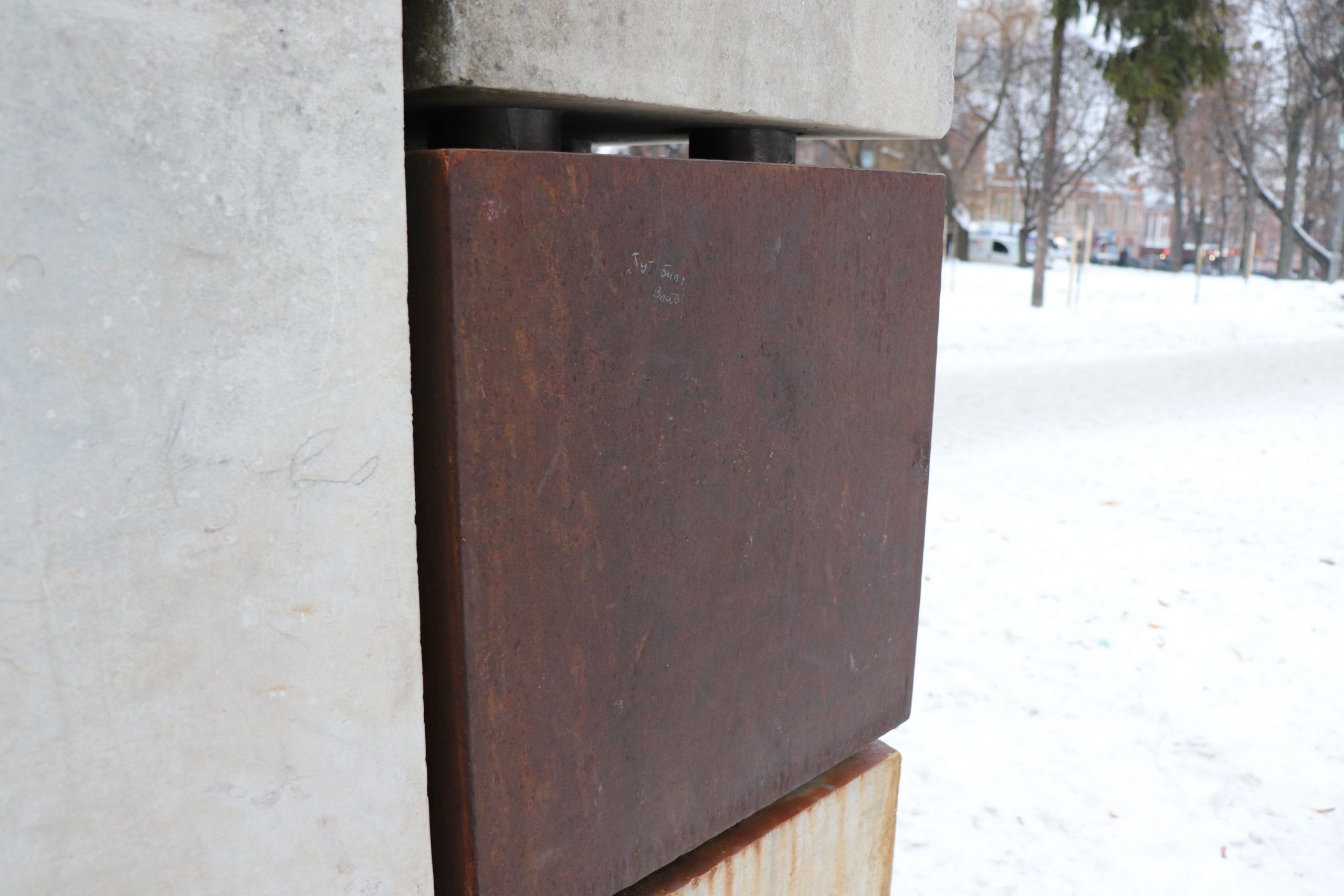 Один із елементів Пам’ятника зроблений із заліза останнього цукрового заводу, що належав Харитоненку. Згідно з концепцією, він поступово має іржавіти і ржавчина, що стікатиме на кубики з вапна, має символізувати “сльози” за втраченою на Сумщині цукровою галуззю.