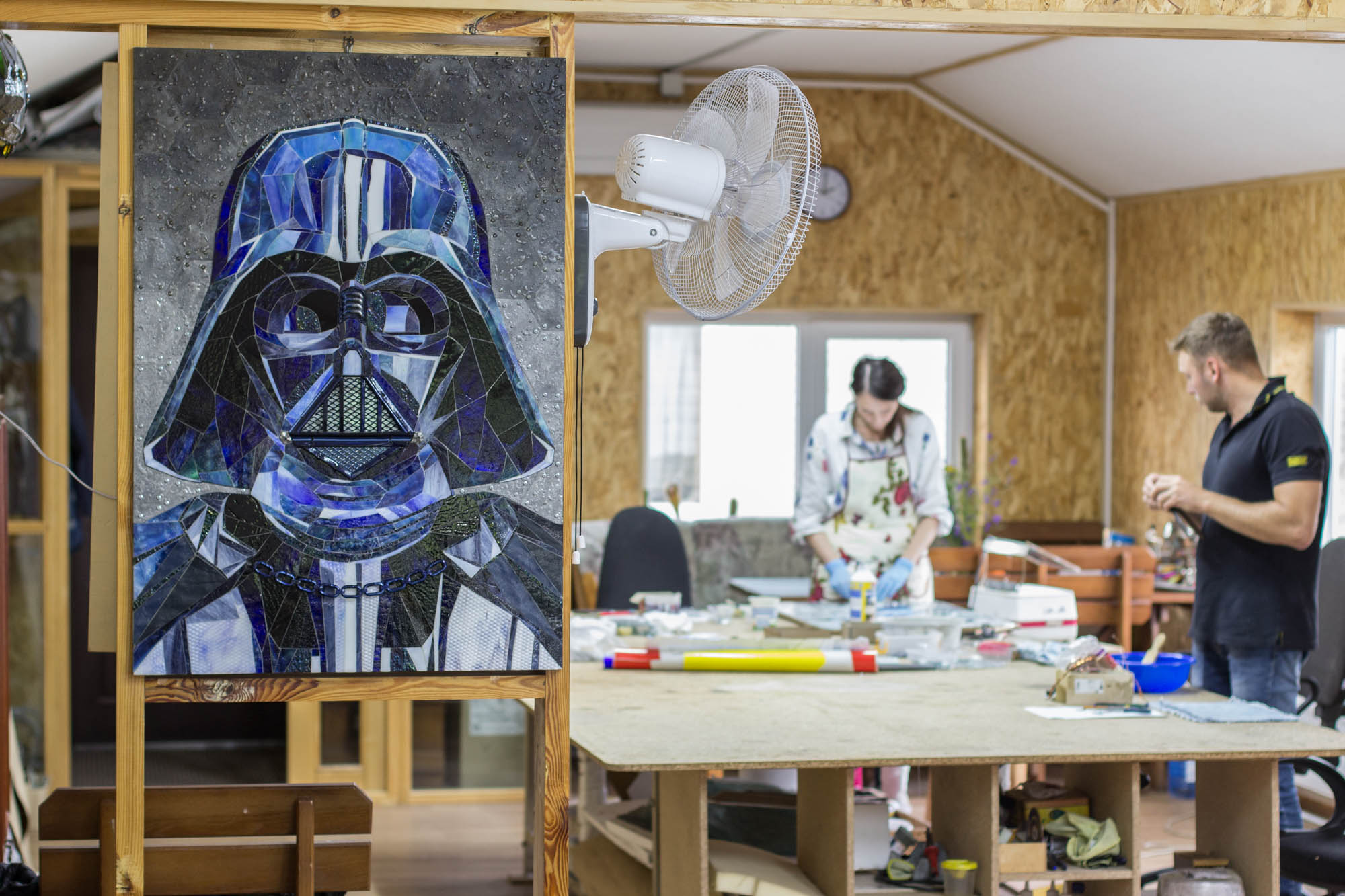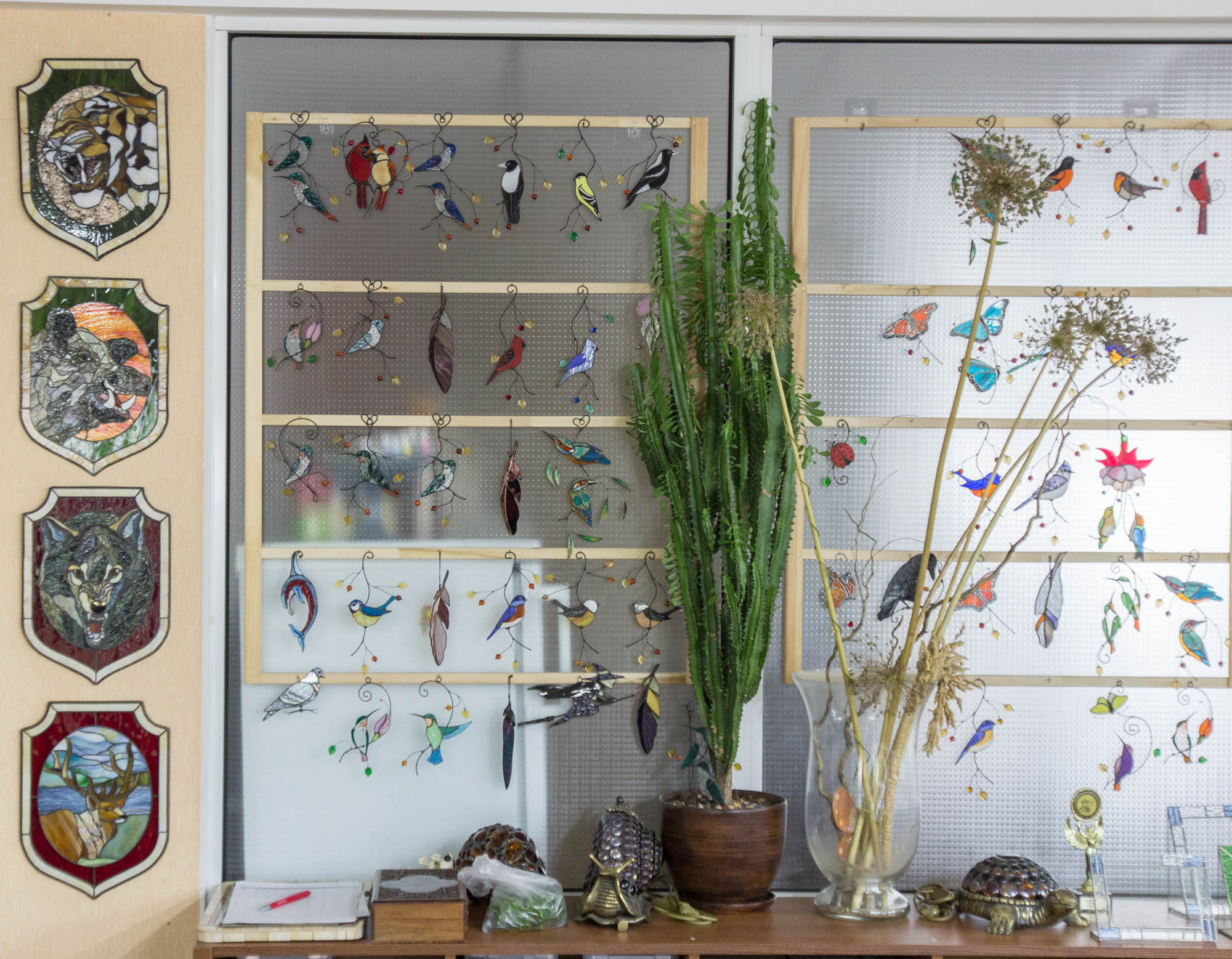 Наша команда виготовляє дуже різнопланові вироби, тому є певний розподіл. Наприклад, ми робимо санкечери — це такі невеличкі вироби, які кріпляться на вікно. Американці вішають їх, щоб птахи не врізалися у вікна. Також виготовляємо індивідуальну продукцію: пейзажі, портрети людей чи тварин, вітражні лампи, картини із мозаїки тощо. Люди замовляють наші вироби в США, Німеччину, Корею, Іспанію, Бразилію, Нідерланди, Нову Зеландію, Англію.