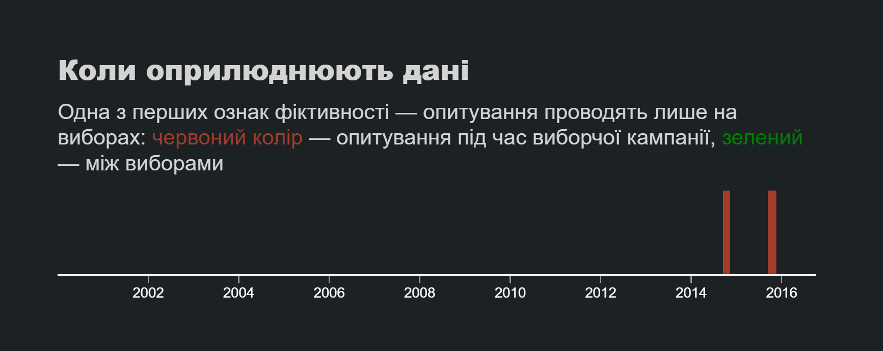 Насправді, майже всі оприлюднені опитування під час виборчих кампаній можна віднести до агітаційної передвиборчої технології – саме так виборцям і варто до них ставитись, – стверджує Дмитро Сінченко, голова ГО «Асоціація Політичних Наук». Справжні результати опитувань – вони в основному для внутрішнього користування, їх дуже рідко оприлюднюють. Є кілька загальних правил, які можуть допомогти виявити грубо зроблену підробку, але більш-менш професійні організації легко їх обходять, тому виявити маніпуляції з результатами можуть лише фахівці, маючи на руках первинні матеріали – анкети та маршрутні листи.