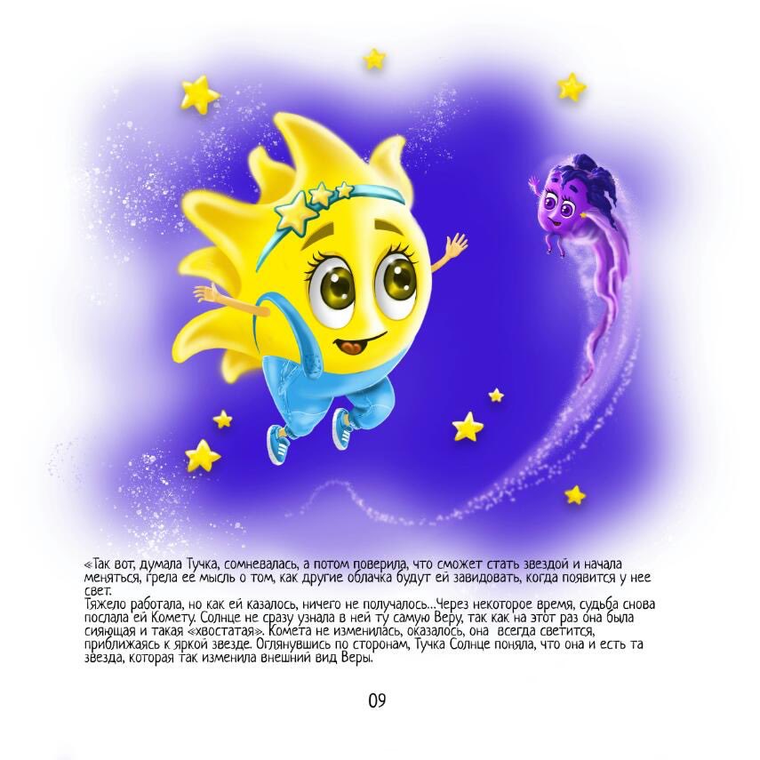 Планую закінчити серію книг про пригоди маленької дівчинки та її казкових друзів, яку розпочали «Чарівні історії. Зима». Якщо ідея повністю реалізується, то ще з’являться історії, присвячені весні, літу та осені. Паралельно працюю над іншим проєктом – книгою «Місія Сонця». Вона кардинально відрізняється від інших тематикою, стилем та дизайном. Текст вже готовий, а от робота з ілюстратором виконана на третину.