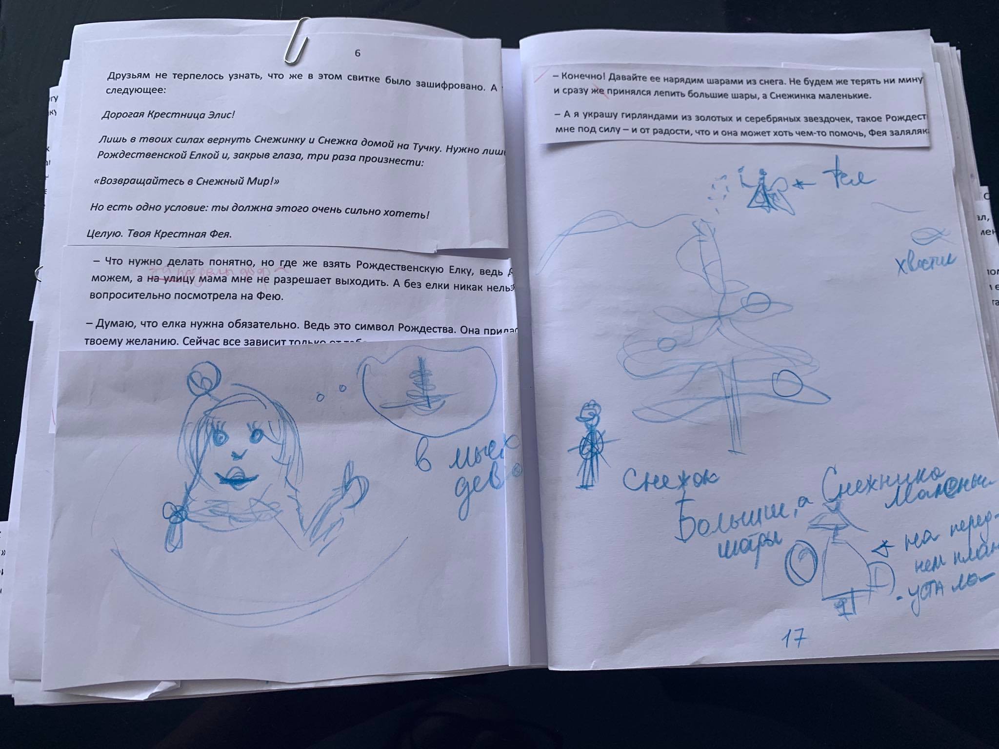 Після того, як створили ілюстрації та відредагували текст, почали верстати. За основу взяли макет, який я створила самостійно, розділивши текст та промалювавши на звичайному аркуші приблизну структуру книги.
