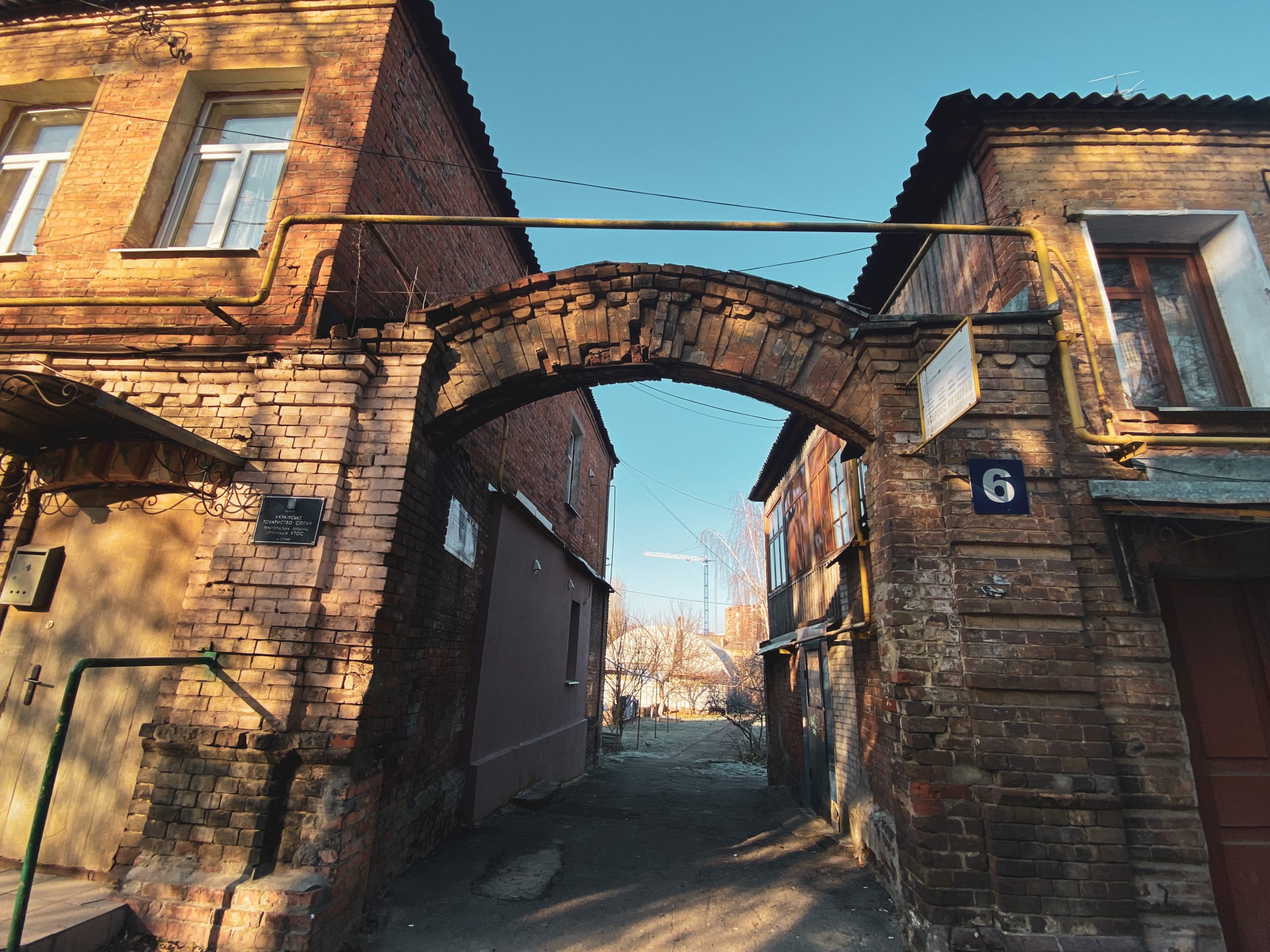 Цегляна арка до подвір’я — це в’їзна арка, яка знаходиться на вулиці Кузнечній. Раніше таких деталей було набагато більше, але значна частина вже зруйнована. Якщо просто уявити таку архітектуру відновленою, без дерев і пластику, то місто виглядає зовсім інакше. А ще ця арка може слугувати навіть своєрідною фотозоною.