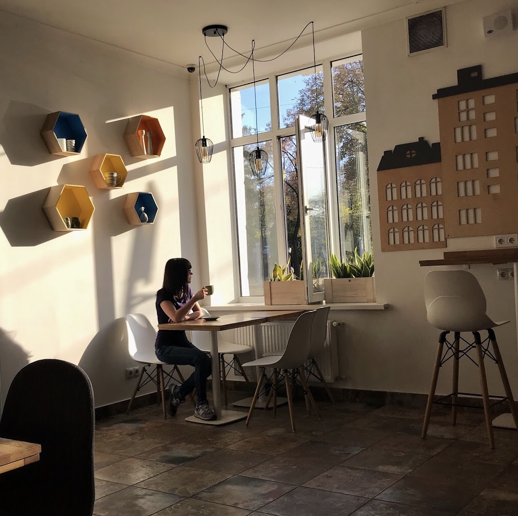 Жанна: «Продуктивно працювала тут години три, бо атмосфера сприяє цьому. З позитиву — невелика кількість людей і швидкий вайфай. Перекус — асортимент тільки з солодких страв».