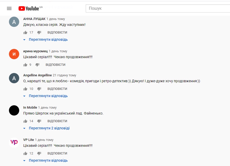 У ютубі та фейсбуці глядачі залишають чимало схвальних відгуків: