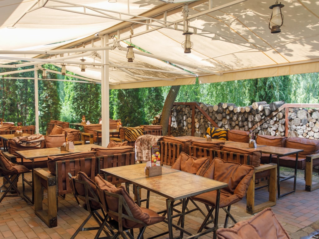 У ресторані «Шафран» акцент на українську, східну і європейську кухні. У меню є випічка, борщ, класичні салати та десерти. Також у закладі готують страви на відкритому вогні: стейки, шашлик, люля-кебаб.