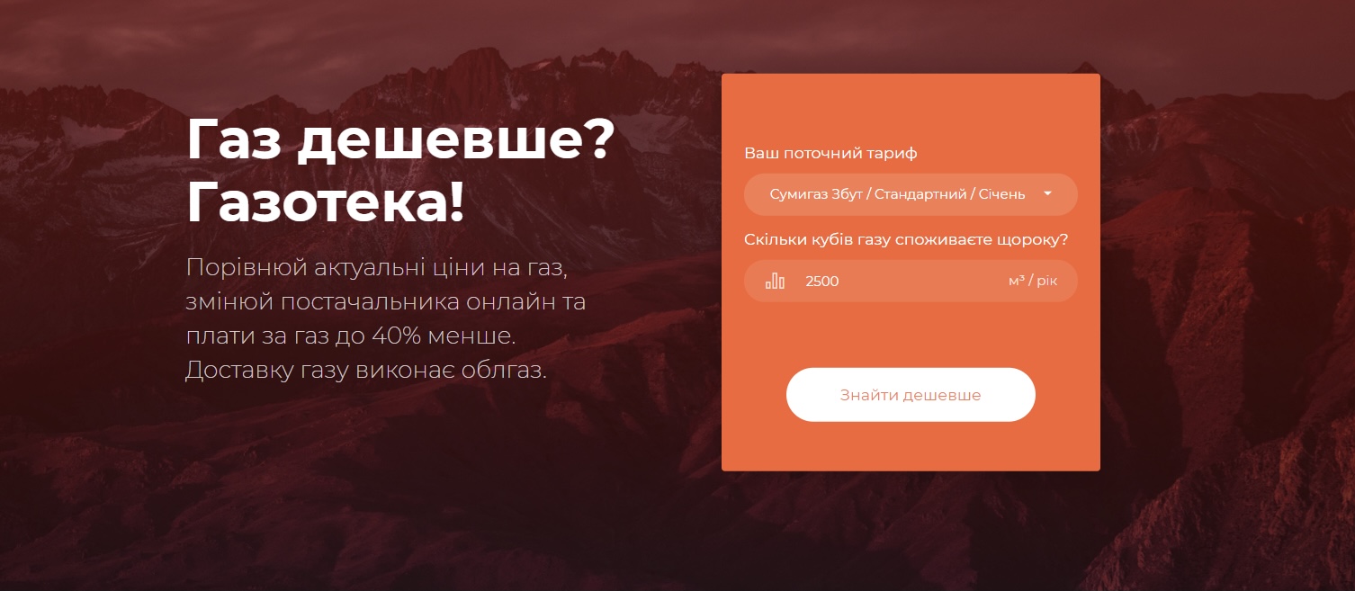 Як працює Газотека: вказуєте ваш поточний тариф («Сумигаз Збут»/ Стандартний) та кількість кубів газу, яку споживаєте щороку (наприклад – 2500 м³/рік). Натискаєте «Знайти дешевше» й отримуєте перелік з більш ніж 50 пропозицій від різних постачальників України. Вони пропонують вам платити від 6, 99 до 10, 80 гривень за 1 м³ й розраховують, скільки вдасться зекономити, якщо оберете їх, а не «Сумигаз Збут».