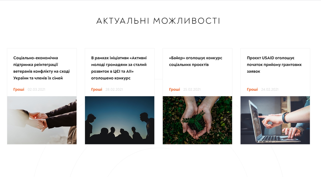 «Велика Ідея» — це платформа соціальних інновацій. У різних рубрикаціях є велика кількість конкурсів, грантів і навчальних проєктів для молоді.