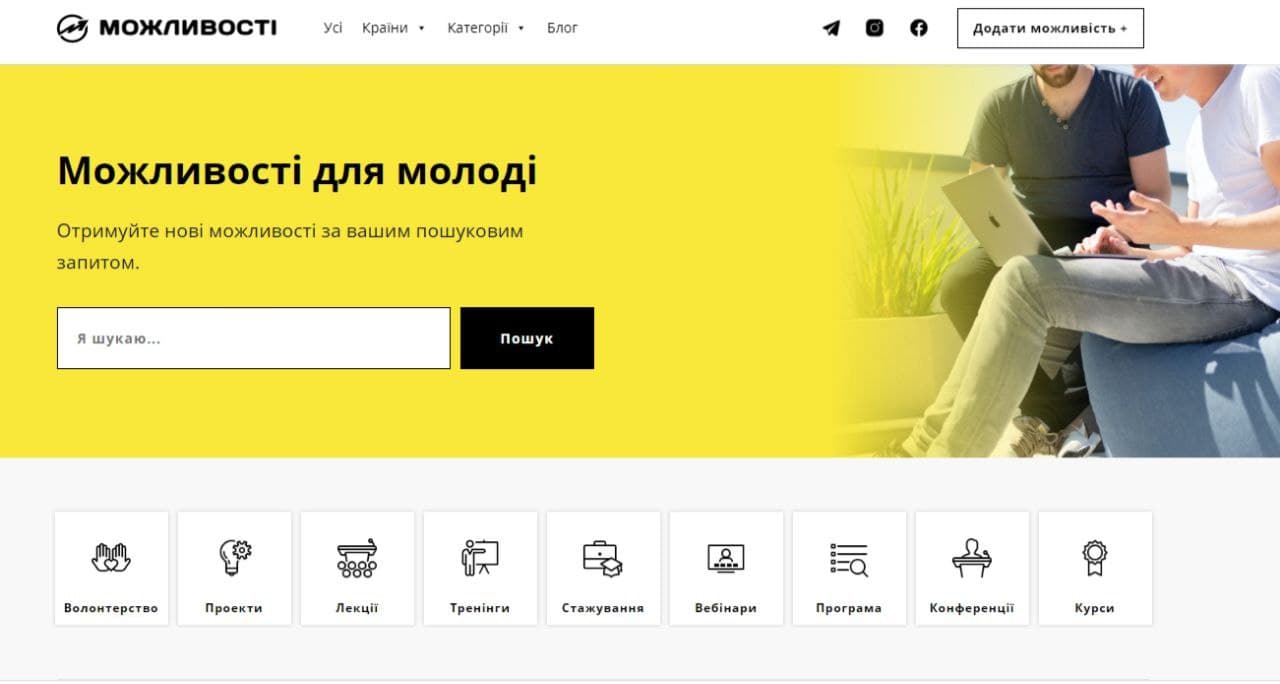«Можливості» — один з найбільших освітніх каналів в Україні, де щодня публікуються актуальні та класні можливості для розвитку, освіти, кар‘єри, подорожей і самовдосконалення молоді.