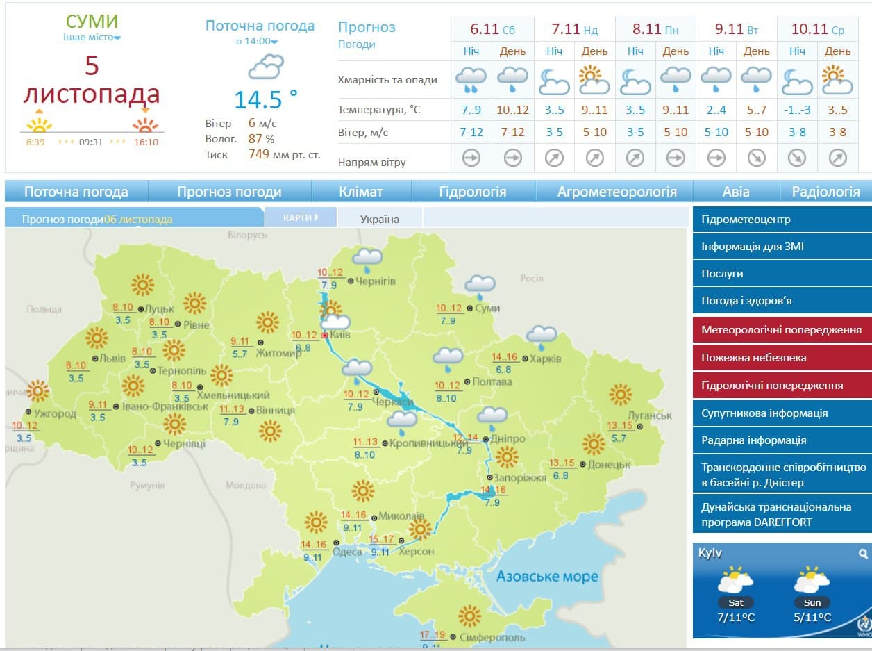 У Сумах — обласний гідрометцентр, він отримує інформацію з шести місцевих метеостанцій та складає прогноз лише на один день