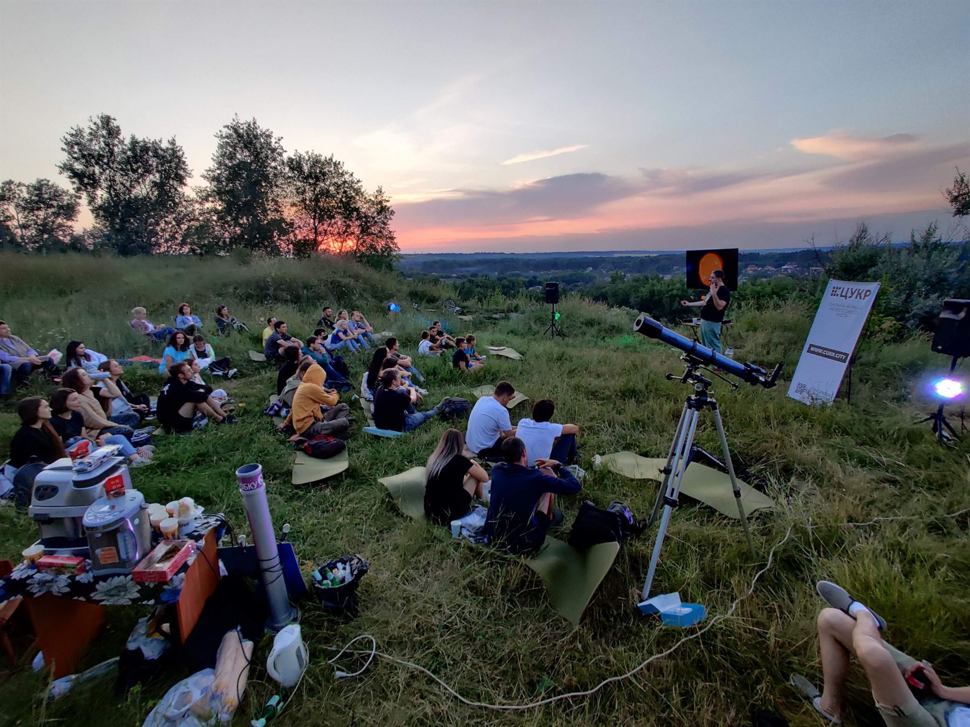 До речі, згадуючи мальовничі локації, ми знайшли фото з однієї закритої події «Цукру». Це була лекція про космос й перед тим, як розпочати дивитися на зірки у телескоп, ми споглядали ще й неймовірний захід зірки на ім'я Сонце. Ставайте доброчинцями, аби отримувати запрошення на наші майбутні події.