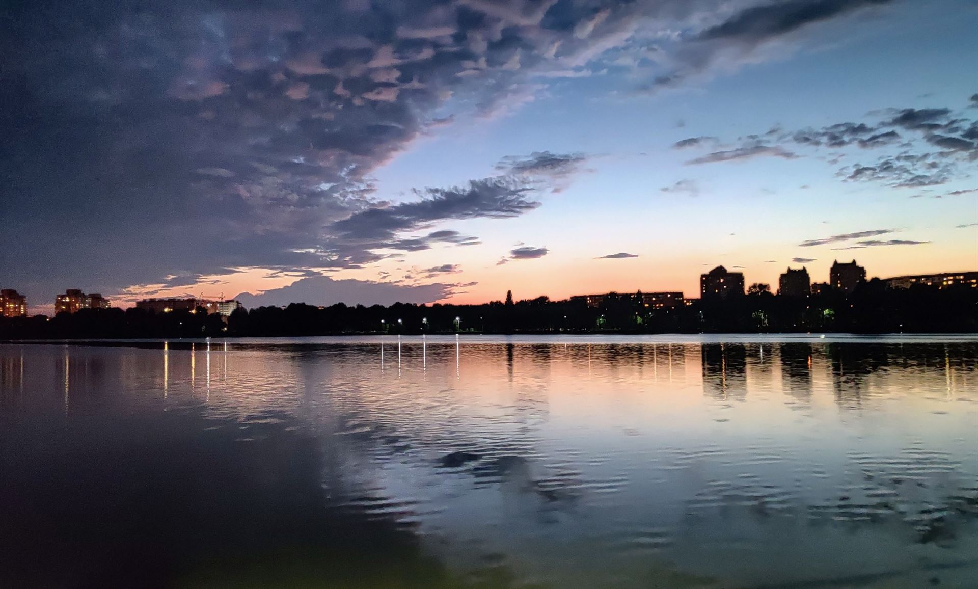 Урбаністичний захід сонця можна побачити на озері Чеха. Уявіть: у небі розливаються кольорові градієнти, у вікнах будинків вмикається світло, а на водному плесі з’являється відображення ліхтарів. Споглядаючи такі краєвиди, ви обов’язково відчуєте себе невід’ємною частиною міста.