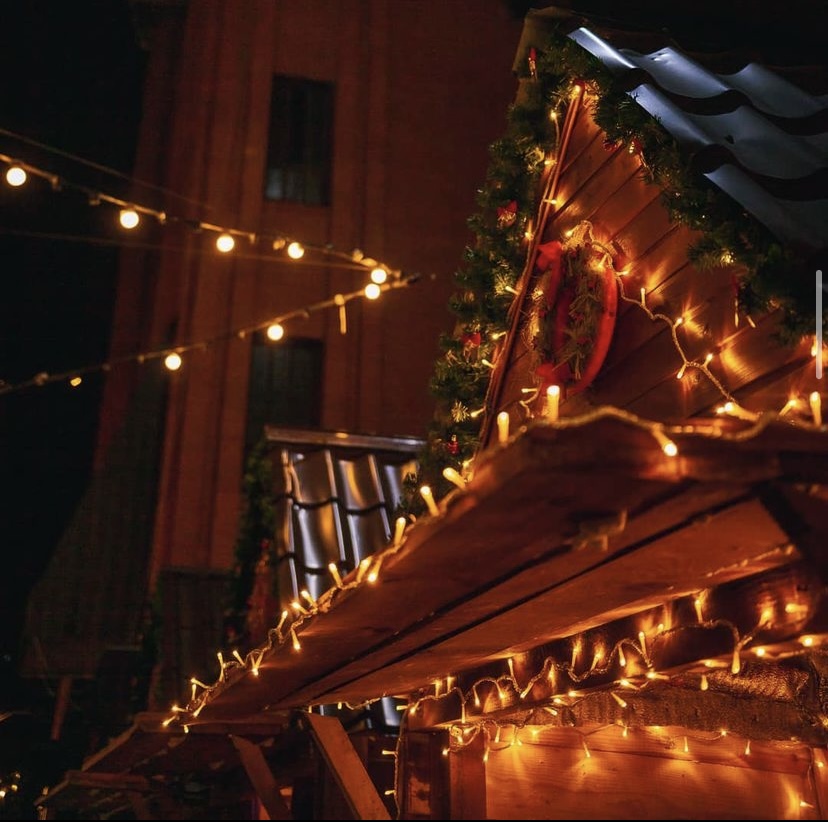 Якщо дивитися на театр імені Щепкіна — ліворуч стоятиме шість однакових будиночків, прикрашених гірляндами. Там продаватимуть гарячі напої та смаколики. Ці будиночки будуть орендовані у Михайла Гриня — засновника артплатформи «Tribuna Park», який на сторінці у соцмережі повідомляє: «Різдвяний ярмарок — будиночки — в цьому році будуть встановлені на Театральній площі. Ми вважаємо, що прийшов вже час робити новорічну казку в масштабах нашого улюбленого міста».