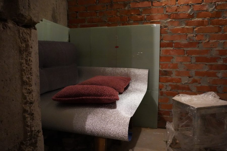 У світлі ліхтарика видно, що укриття ремонтують, пан Віктор каже, що на цьому етапі в приміщення провели воду, підлагодили опалення, зняли штукатурку та почали лагодити санітарний вузол, для якого, як запевняє чоловік, вже закупили все необхідне. У планах також оновити фільтро-вентиляційну установку. Коли саме завершаться роботи, пан Віктор точно сказати не може. Зазначає, що справа посувається не так швидко, як хотілося б.