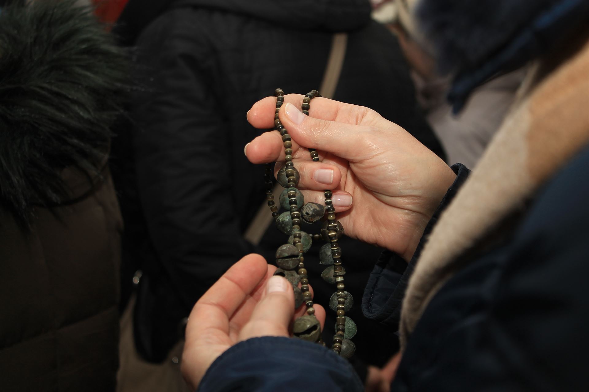 Тим часом Сергій показує присутнім різні предмети: скіфське дзеркало, прототип сковорідки та грошові одиниці різних часів. А тоді переходить до власних знахідок.