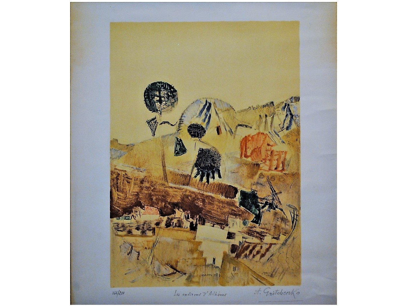 Кольорова літографія «Біля Атен» — робота відомого художника, уродженця міста Кролевця, Олекси Грищенка входила до серії з шести літографій і була виконана під його наглядом у 1974 — 1975 роках в одній з найбільших Паризьких фірм. Кожна з літографій була пронумерована і підписана власноруч автором.