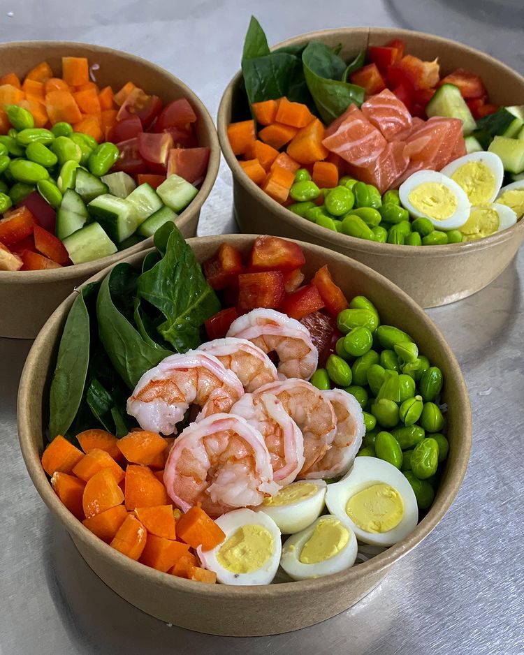 Кондитерська, що створює низькокалорійні десерти, пропонує поснідати боулами з фунчозою, чорним рисом, креветками, яйцем пашот та овочами.