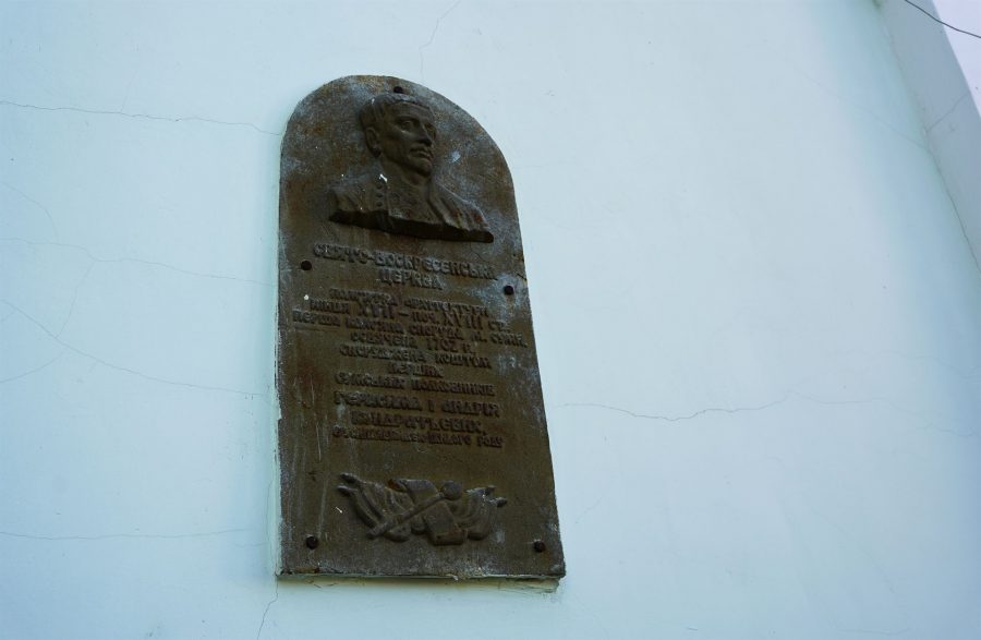 Цю табличку можна помітити на одній зі стін Свято-Воскресенського собору на вулиці Воскресенської. Хоча вона не оригінальна та встановлена вже після побудови храму, цей знак — єдиний у Сумах, присвячений Герасиму Кондратьєву.