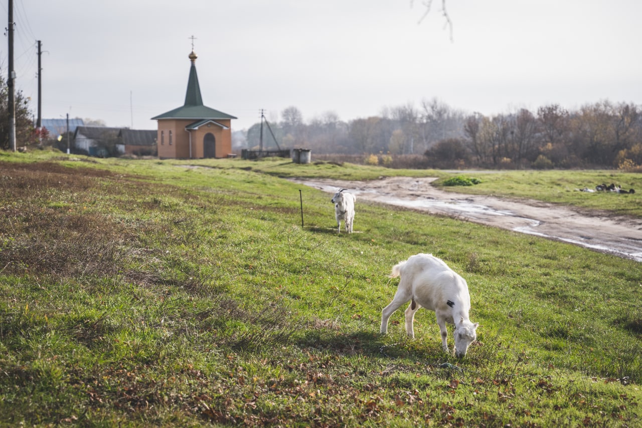 Холодне повітря пробивається крізь кілька шарів одягу. Наша перша зупинка — магазин обабіч дороги. Зазвичай біля таких місць вирує життя, але зараз тут неабияк тихо. Прямісінько біля входу зустрічаємо жінку, яка чимчикує до свого велосипеда. В її руках дві буханки хліба, які вона обережно кладе до кошика.