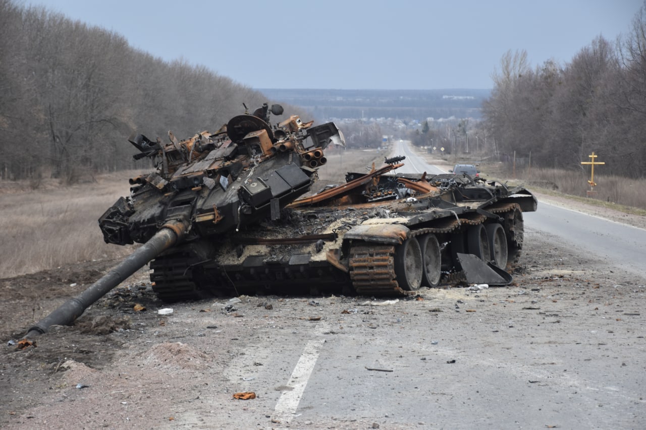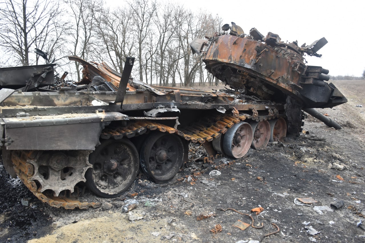 В один із днів ми з товаришами знімали дорожні знаки в селі та побачили, як окупанти спалили свій же танк. Ми стояли на перехресті й помітили колону техніки, тож швидко застрибнули до магазину край дороги. Телефони одразу поставили в режим польоту та швидко кинули під лавку. На столі стояли пляшки від пива, ми взяли їх до рук і почали вдавати з себе місцевих пияк.