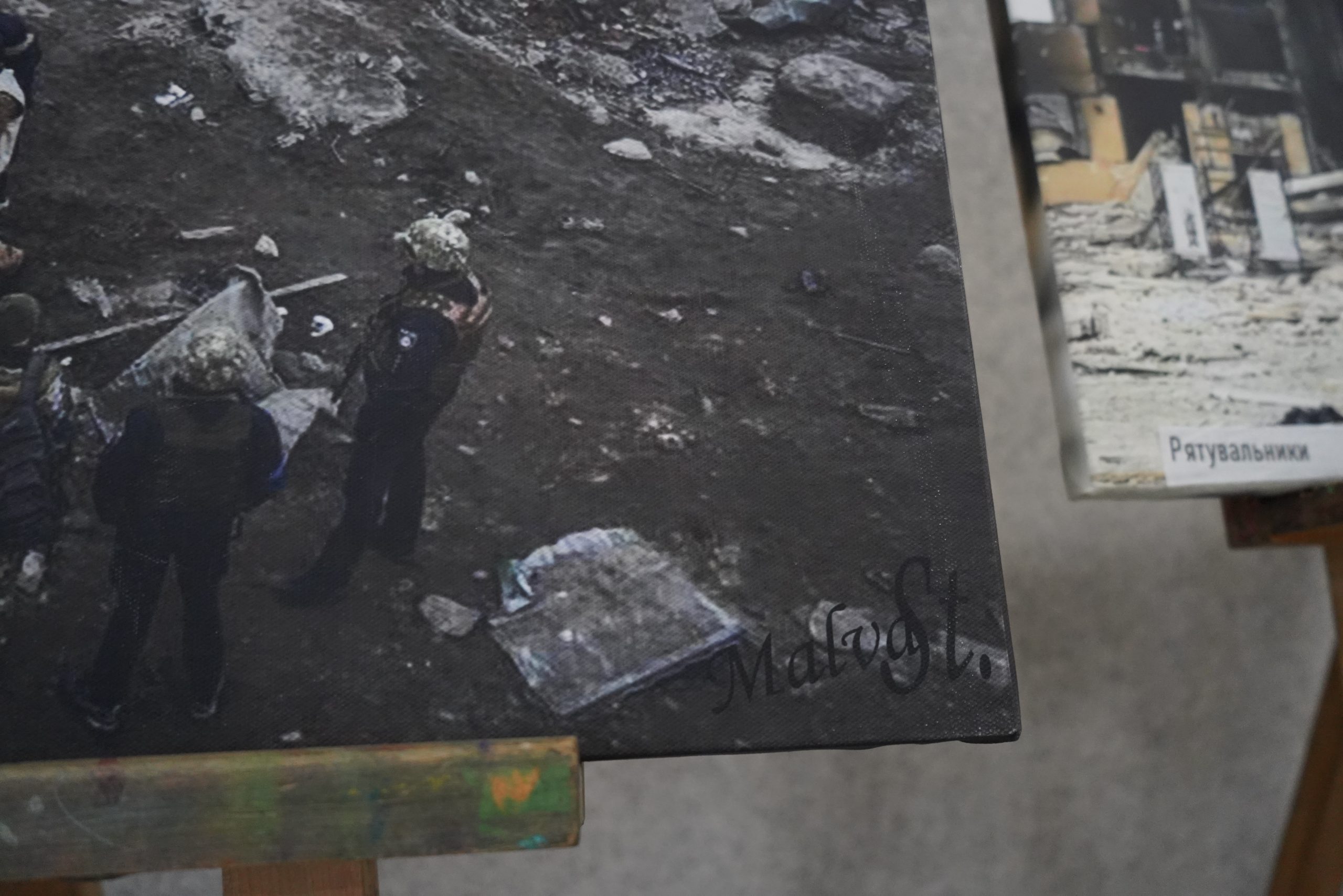 Щодо авторства всіх фотографій, працівниці студії визнали, що не всі знімки робили вони. Деякі світлини отримали від знайомих, частину зробили самостійно, а решту завантажили з інтернету. Для маркування полотен друкарня додала логотип фотостудії «Мальва» на кожну роботу, навіть на ті, що не належали авторству студії.