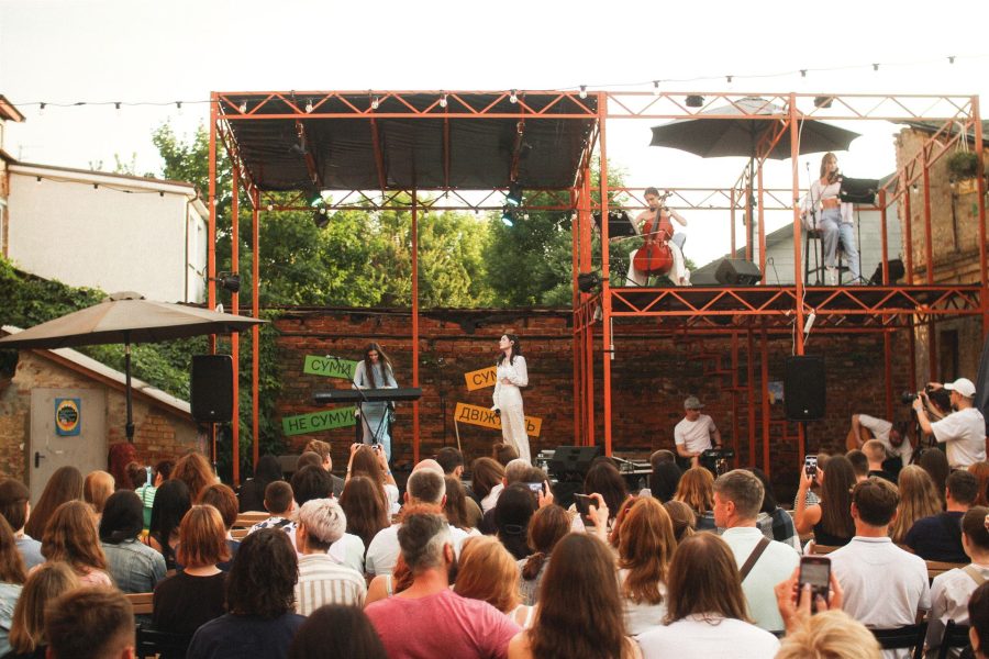 — Міжнародні організації також побачили нашу активність у місті, звідки тільки-но відійшли російські війська: тут проводили концерти, просвітницькі лекції, збирали кошти на благодійність. Так у нас з’явився контакт донора, який отримує фінансування від США. Він допоміг облаштувати дворик й провести ярмарку, низку лекцій, концертів і стендапів, — додає Дмитро.