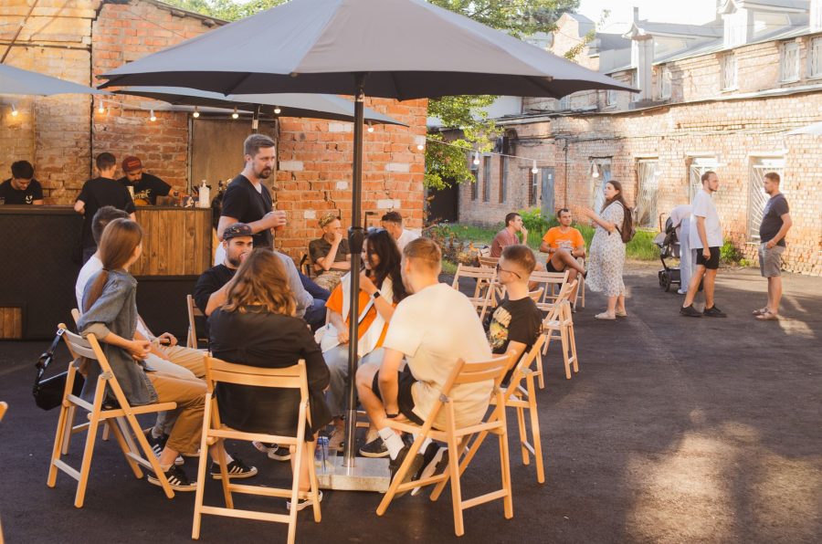 — Потім кияни почали проводити нетворкінги просто неба на літніх майданчиках закладів. Нам сподобалася ідея, але подібних ресторанів чи кафе не знайшли. Тож обрали іншу локацію — дворик сумської філармонії. Але в ОДА нам запропонували дворик біля Розумного хабу на Кузнечній, 2. Порадили привести його до ладу та користуватися, згодом ми уклали меморандум про співпрацю.