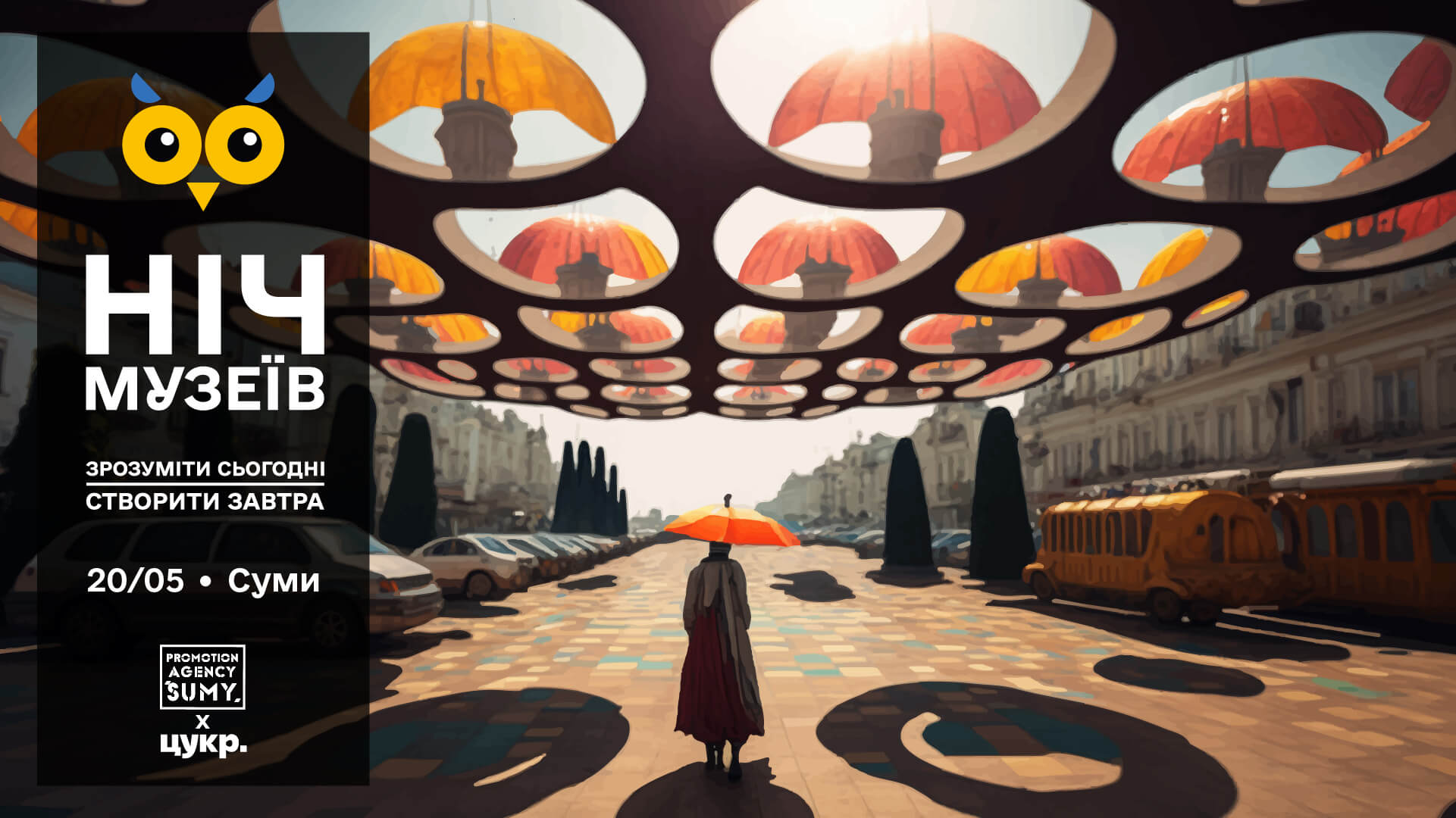 «Ніч музеїв 2023» відбудеться 20 травня. Агенція промоції «Суми» разом із Цукром пропонують митцям на конкурсній основі отримати до 20 000 гривень на облаштування власної локації до дня Фестивалю. Ми підтримаємо 15 проєктів на загальну суму 300 000 гривень.