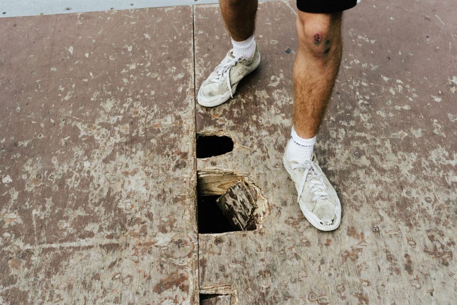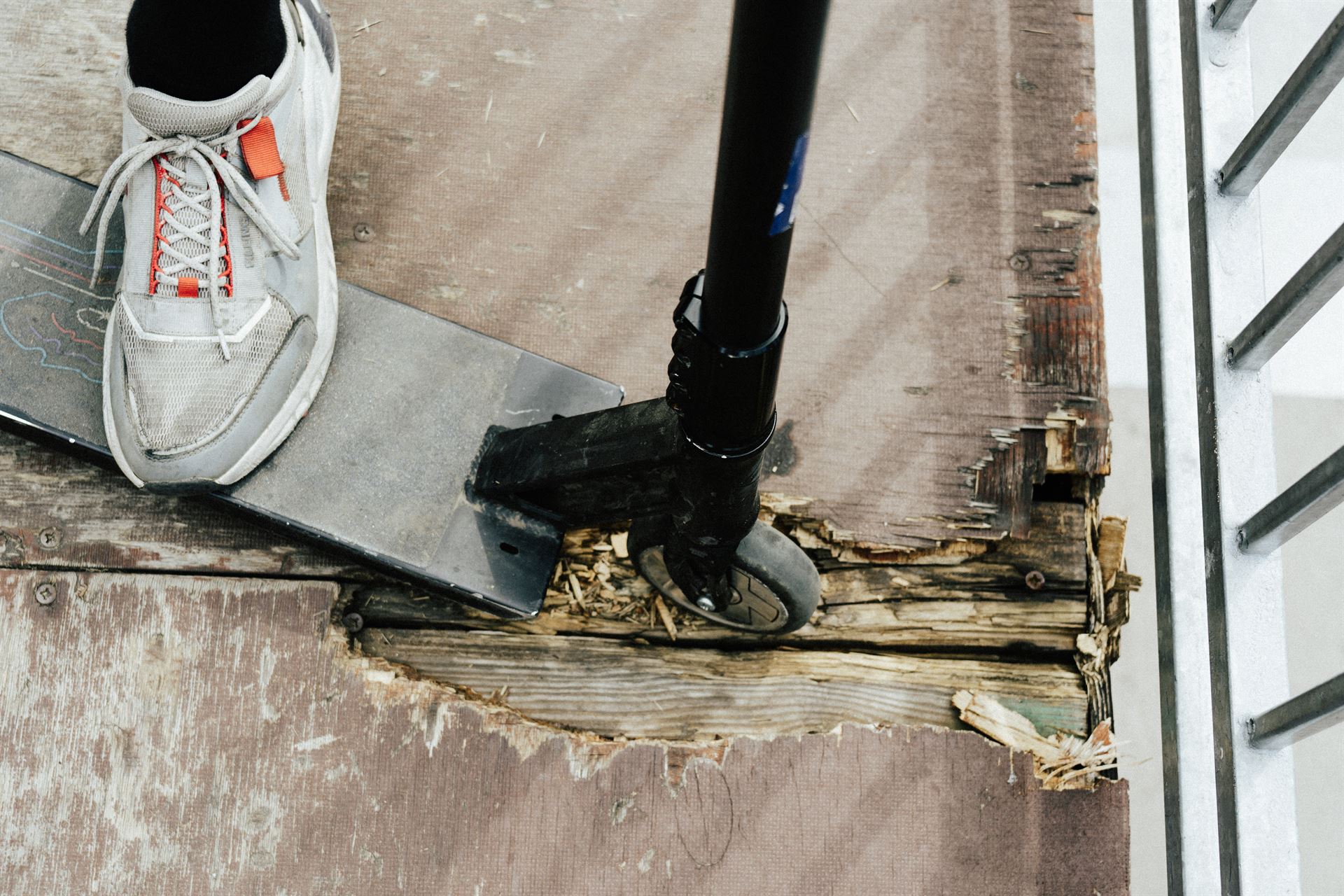 — За чотири роки існування в скейт-парку з'явилося багато дірок. Переважно це наслідки змін клімату: через дощі, спеку, сніг ламінація на фанері стирається, а після незахищені дошки гниють і проламуються. А тоді влітаєш самокатом у ці отвори й просто падаєш.
