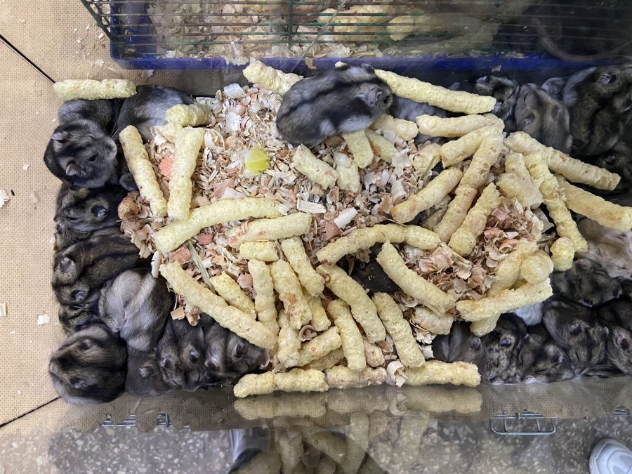 — Ми пояснюємо покупцям, як годувати тварину. Людина, яка поширювала відео з претензіями, писала, що в нас брудні клітки, але ж там цього не було. Зараз ви можете бачити, що тварини чисті, сухі й товстенькі — це перші ознаки того, що з ними все добре. У щурів лежать кістки, але це корисна добавка для їхнього раціону. Гризуни живуть колоніями, тому їм не тісно. Якщо прохолодно, вони туляться одне до одного і таким чином гріються. Якщо, наприклад, хом’яки сваряться, кусаються, то ми їх розсаджуємо за віком у різні клітки.
