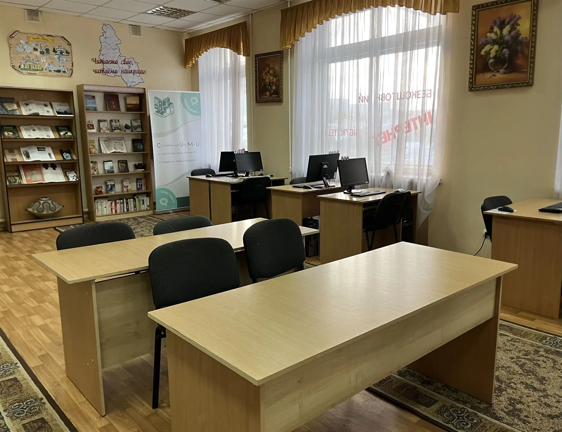 Графік роботи бібліотеки: понеділок — четвер з 9:00 до 18:00, субота і неділя — з 10:00 до 17:00