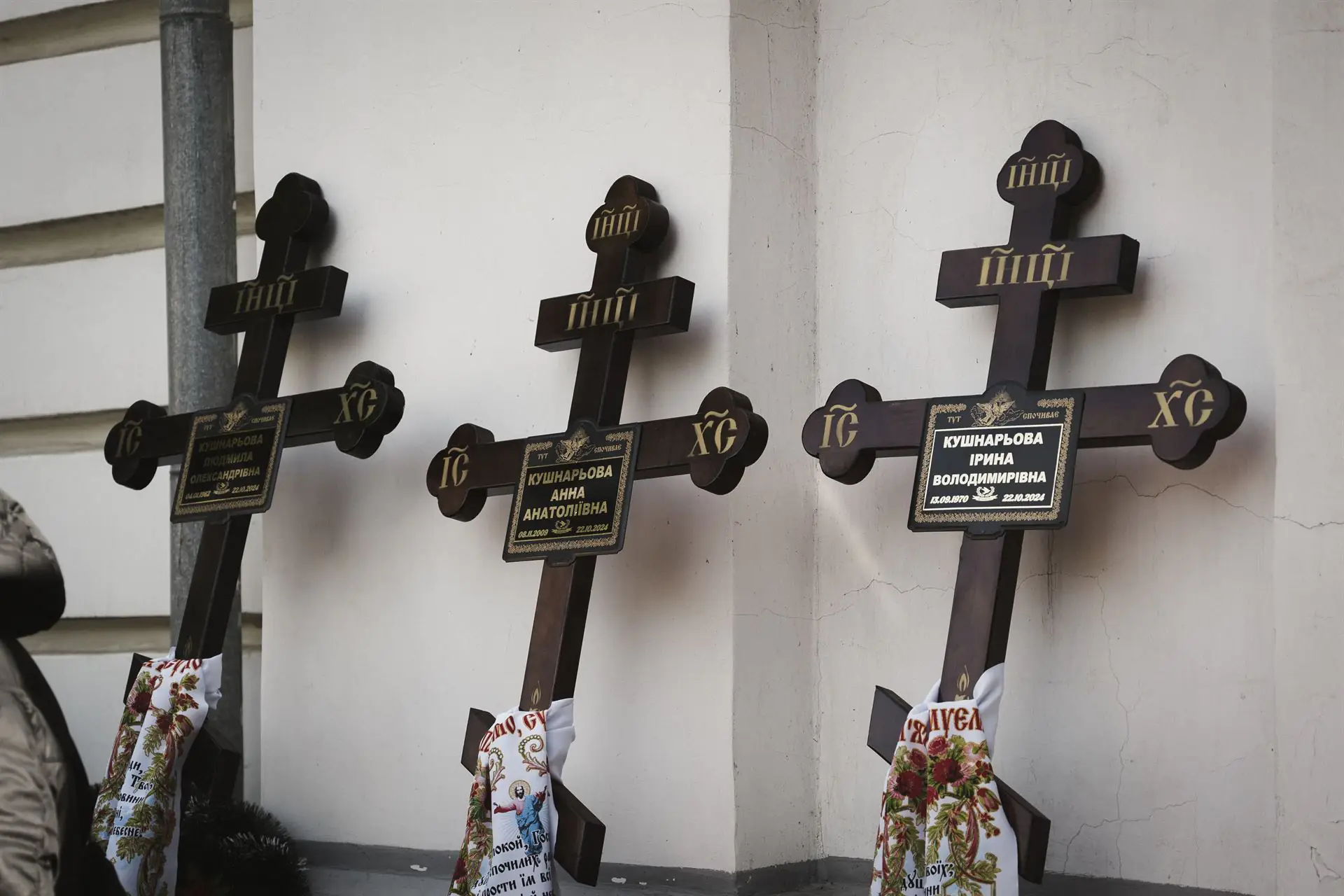 Сьогодні біля Воскресенської церкви говорять дієслова в минулому часі. Дехто навіть виправляється: «14-річна Аня займається, ой, займалася…». Суми прощаються з Анною, Іриною та Людмилою Кушнарьовими, яких у власних будинках убив російський «шахед». Вшанувати пам’ять загиблих сум’ян прийшли й найближчі, й незнайомі: сім’я, друзі, сусіди, однокласники Ані й інші містяни, що не знали цих людей за життя.