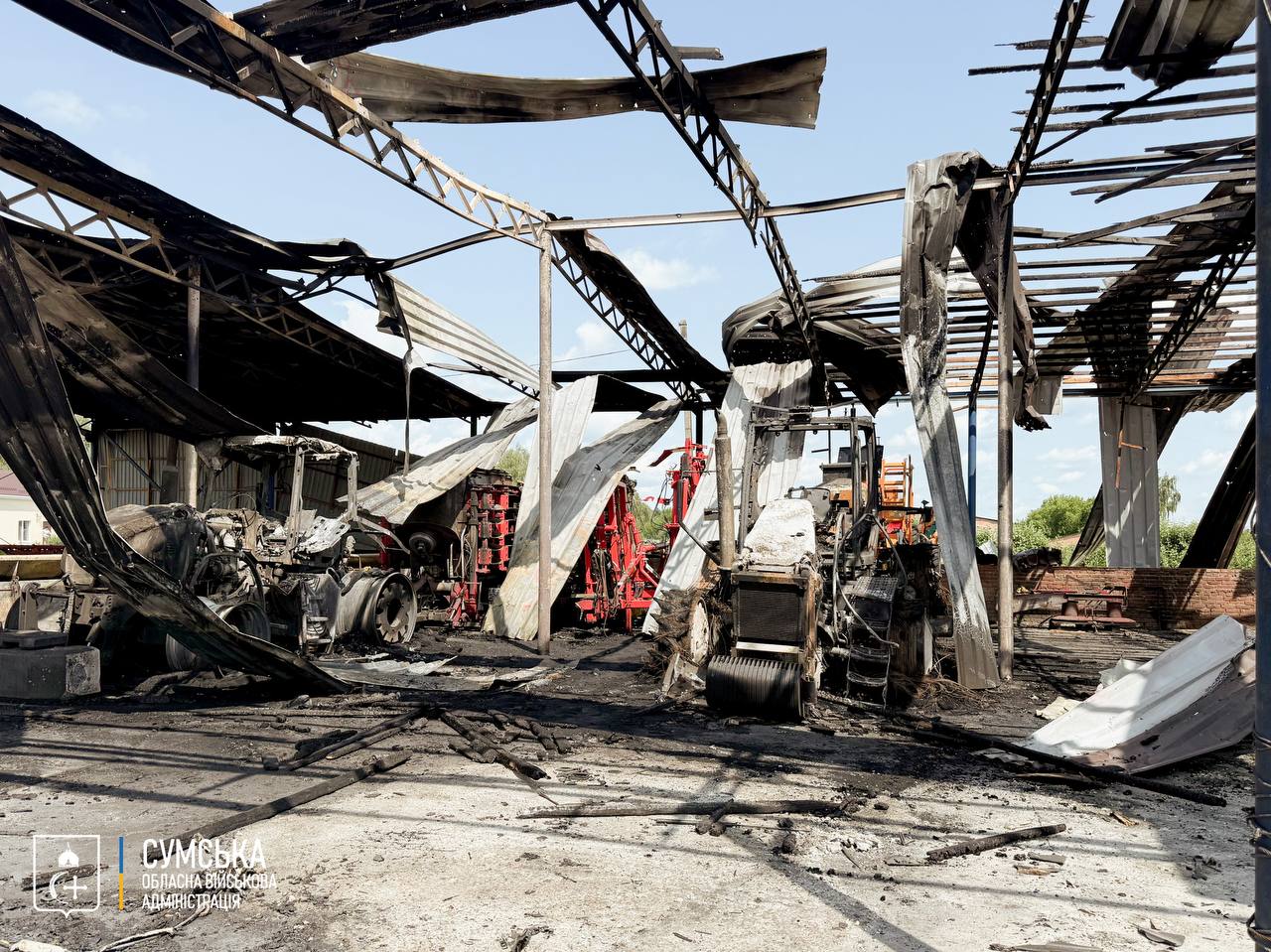 5 червня внаслідок російського обстрілу пошкодили комбайн у Великописарівській громаді, а 11 червня — чотири одиниці сільгосптехніки в Лебединській. Через атаку ворога 19 червня загорілося кафе на Кролевеччині. 30 червня у Лебединській громаді зруйнували адмінбудівлю та пошкодили два навчальні заклади.