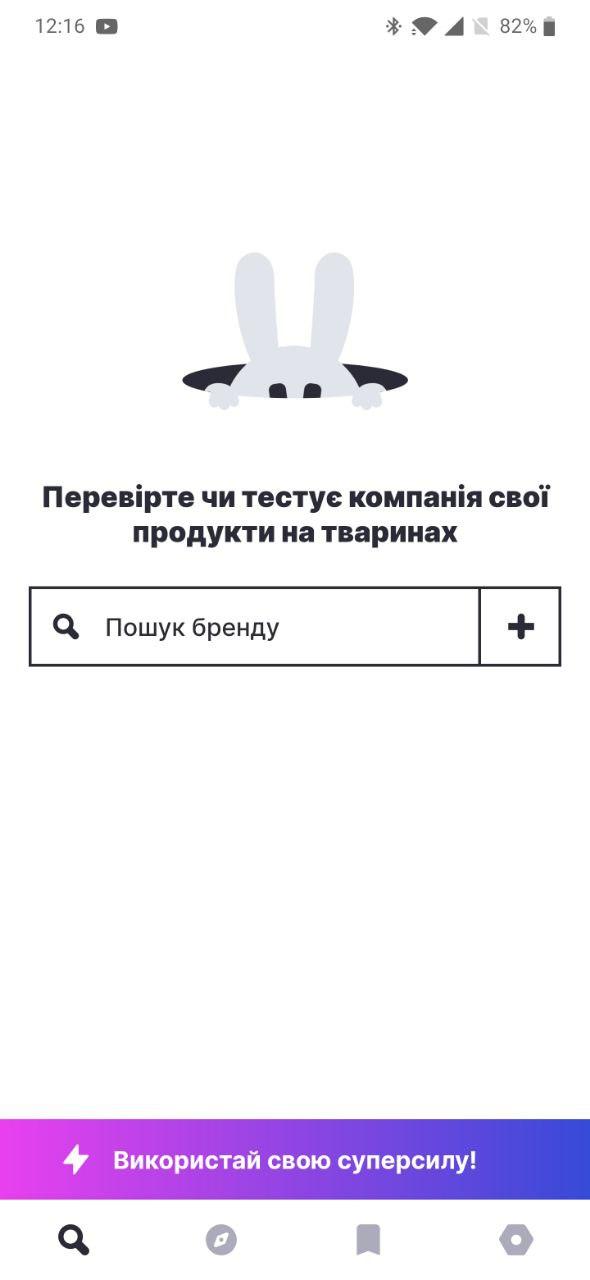Рита: Користуватися додатком дуже просто: заходиш, вводиш назву компанії, яку хочеш перевірити, і додаток показує її політику щодо тестування продукції на тваринах. У нас в базі вже є більшість топових брендів, але якщо додаток чогось не знаходить, можна запропонувати нам додати бренд. Ми його перевіримо і він також з’явиться в додатку.