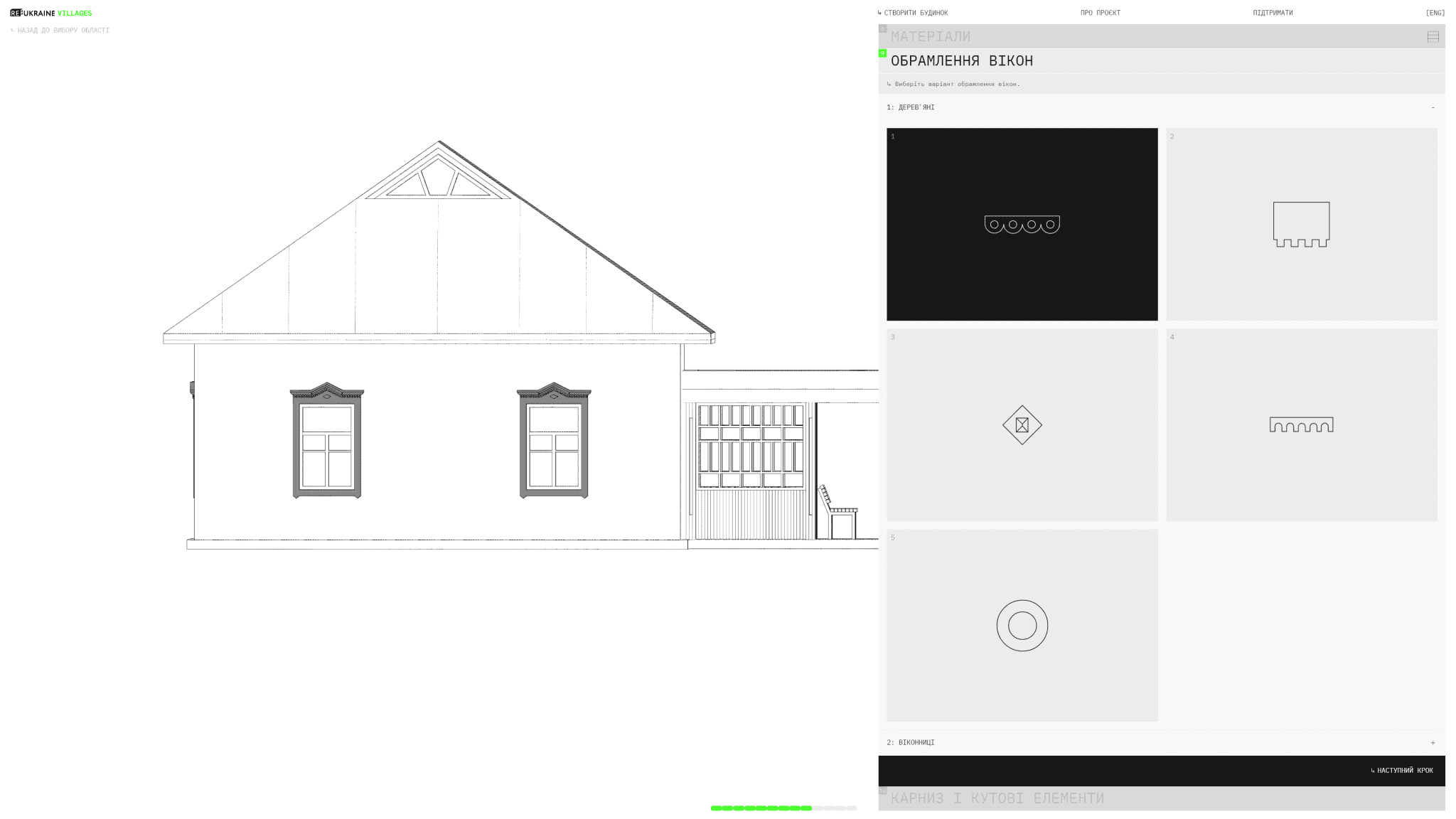 В онлайн-конструкторі від RE:Ukraine Villages можна створити детальний план будинку із дизайн-кодом Сумщини та інших прикордонних областей. Проєкт створила майстерня balbek bureau, щоб зберегти сформований образ українських сіл, а також допомогти людям, чиє житло постраждало від росіян, відбудувати чи звести нові будинки.