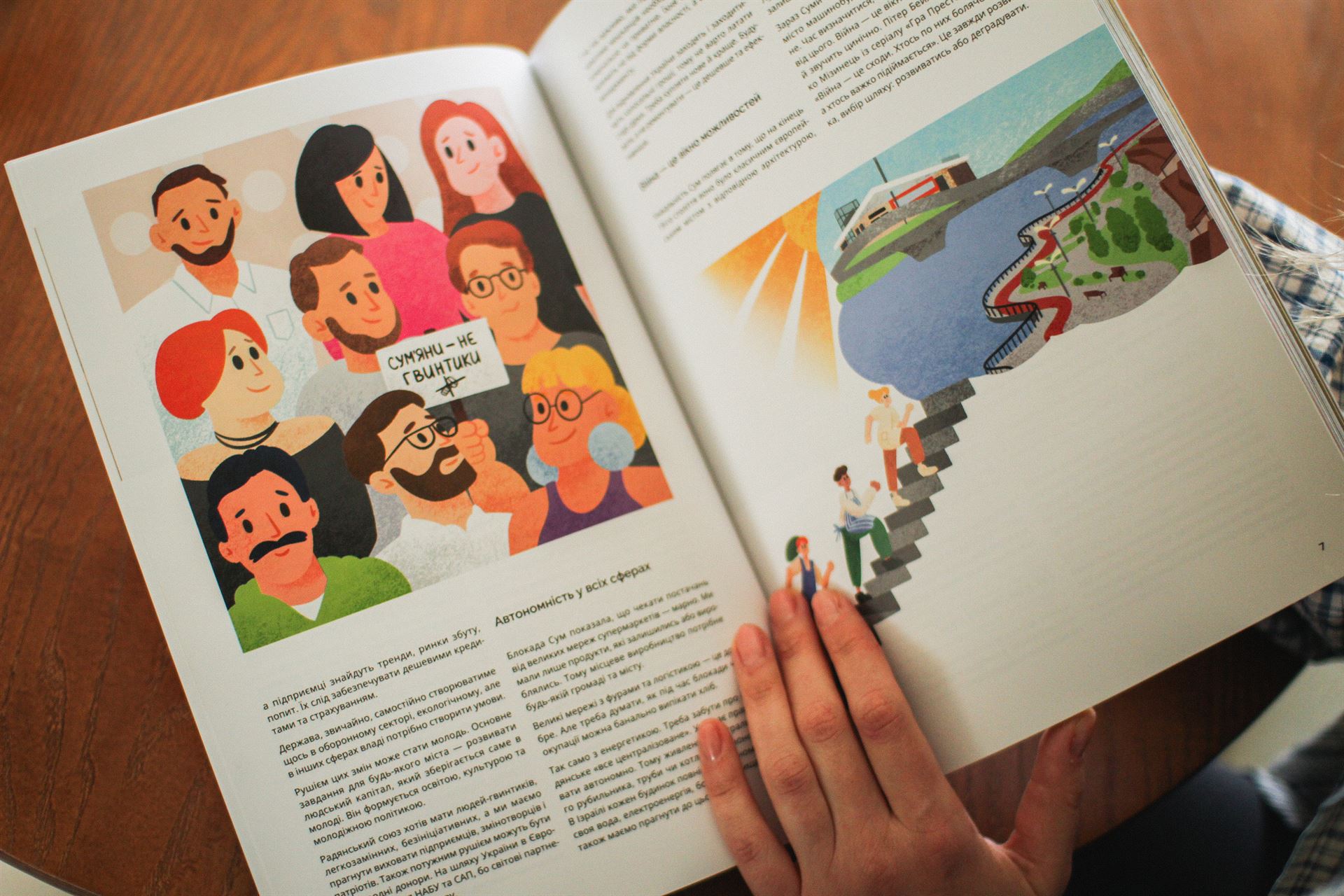«Цукр» випустив четвертий друкований журнал. У ньому зібрані тексти та фото, які дають віру у світле майбутнє Сум. Це історії митців, бізнесів, волонтерів та інших ініціативних сум’ян. Журнал коштує 350 гривень. У понеділок ми презентували його в «Розумному Хабі», а тепер видання можна придбати в 22 закладах міста та Ц.Крамниці за посиланням.