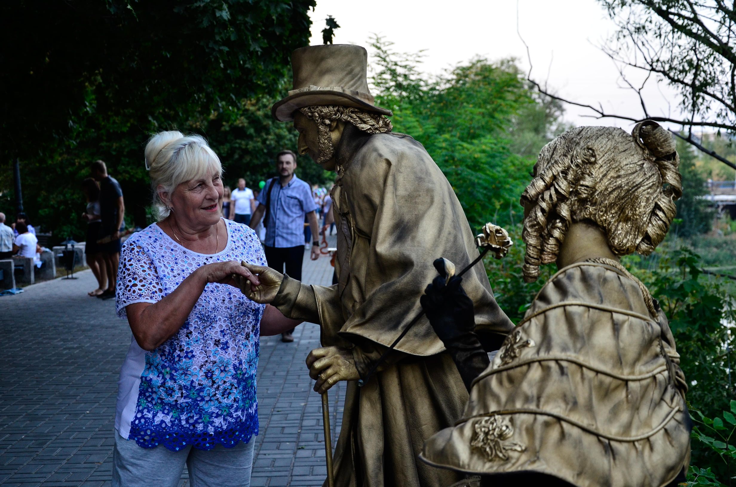 За пів години всі вони застигнуть вздовж вечірнього Покровського скверу, а потім оживатимуть на очах у здивованої публіки. Уже завтра вони змагатимуться за гран-прі фестивалю, яке визначать голосуванням глядачі. Вони не втомлюватимуться позувати для публіки, яка й не здогадуватиметься, яких зусиль коштує ця магія вуличного мистецтва.