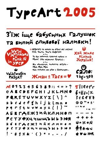 Ну і ковиряв потихеньку цю тему у вільний час. А потім в 2005-му році у Москві був шрифтовий конкурс "TypeArt". Я послав свій шрифт Галушки і він став лауреатом. Виявляється, шрифти потрібні ще комусь окрім мене! Ок, продовжую в тому ж руслі! 🙂