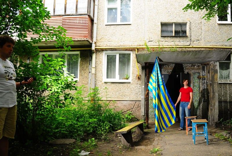 Вова запевнив робітників ритуального салону, що йому потрібна домовина буквально на пару годин – тільки приміряти, і що він його поверне в цілості і сохранності. Насилу впихнувши “груз 200” в мініатюрне Рено Твінго, хлопці прибули на місце зйомки - тихий дворик неподалік на Петропавлівській. Поставили труну на true-табуретки, прилаштували прапор. Було б ефектныше, якби стяг майорів на вітрі, але погода того дня була безвітряна. Та й діяти треба було швидко: перехожі хрестилися, цікавилися, з якої квартири нещасний і висловлювали пропозицію зібрати з сусідів кошти на допомогу в похованні. Ми трохи няіковіли: притомної легенди, що тут робить гроб ми не підготували. “Та це это... не то, шо ви подумали... це для газети... дєнєг не нада...” І вже не дочекавшись попутного вітру, зробили кілька кадрів і вернулись на базу. Домовину повернули не ушкодженою. Win! 🙂