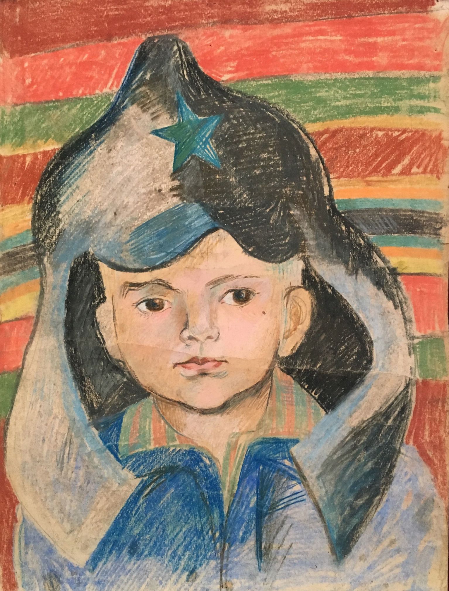 Портрет Дмитра у прадідівській будьонівці. Малюнок мами Ніни Григорівни. Початок 1980-х